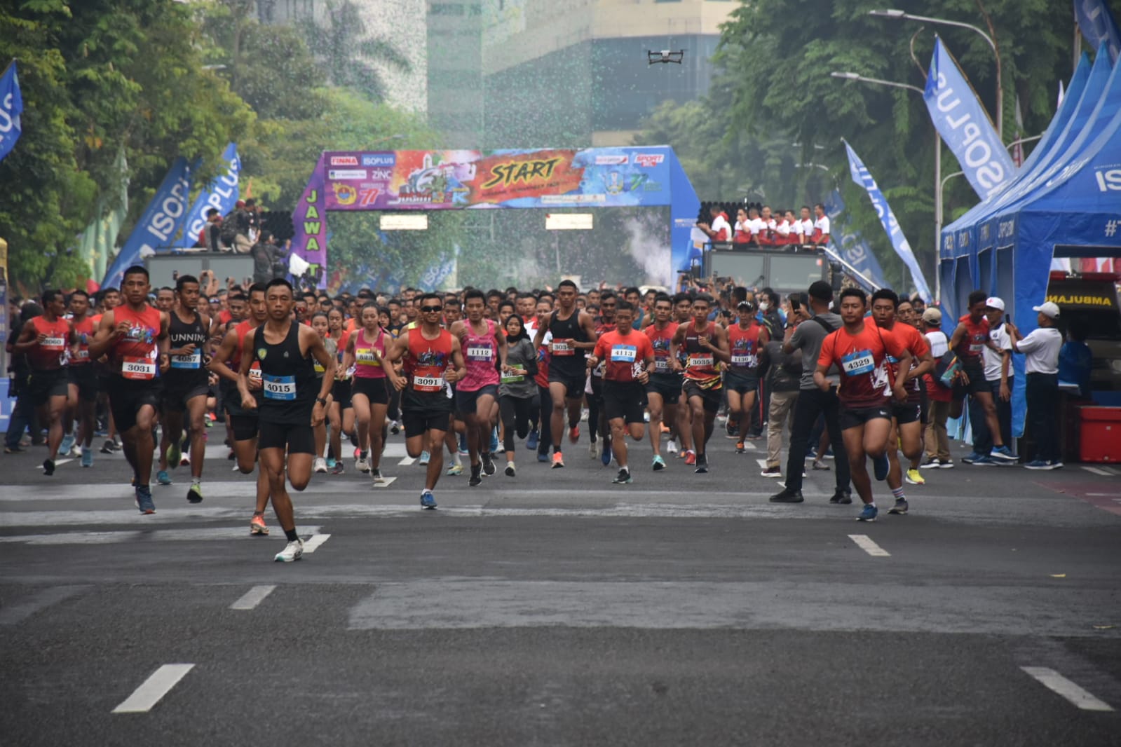 Pada kesempatan tersebut Gubernur Jawa Timur Khofifah Indar Parawansa didampingi Danpasmar 2 Brigjen TNI (Mar) Suherlan serta Ketua Pelaksana Jatim Run Kolonel Marinir Gunawan Tri Utomo melepas peserta lomba lari sebanyak 2500 yang berasal dari berbagai elemen masyarakat Indonesia dan luar negeri.