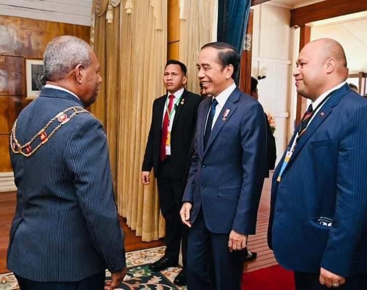Port Moresby,Pelitakota.id Presiden Joko Widodo dalam rangkaian kunjungan kenegaraan ke Papua Nugini bertemu dengan Gubernur Jenderal Papua Nugini Sir Bob Dadae di Government House pada Rabu, 5 Juli 2023.