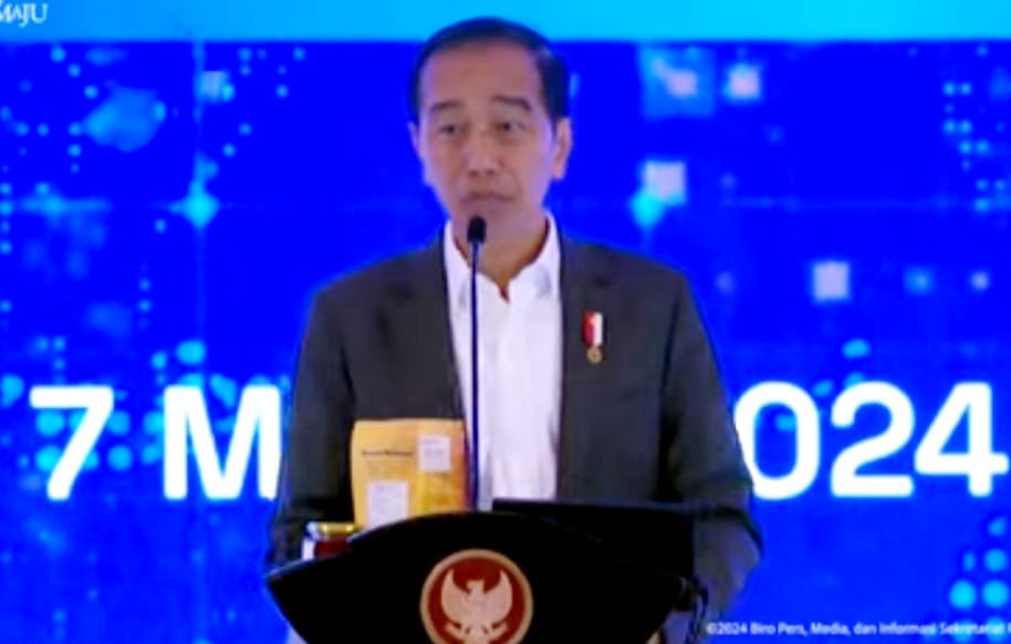 Jakarta – Presiden RI Joko Widodo (Jokowi) membuka BRI Microfinance Outlook 2024, di Menara BRILiaN, Jakarta, Kamis (07/03/2024). Dalam sambutannya, Presiden Jokowi menekankan pentingnya sektor usaha mikro, kecil, dan menengah (UMKM) dalam menggerakkan perekonomian Indonesia. UMKM yang berjumlah kurang lebih 65 juta berkontribusi sebesar 61 persen terhadap produk domestik bruto (PDB) nasional dan menyerap tenaga kerja sebesar 97 persen.