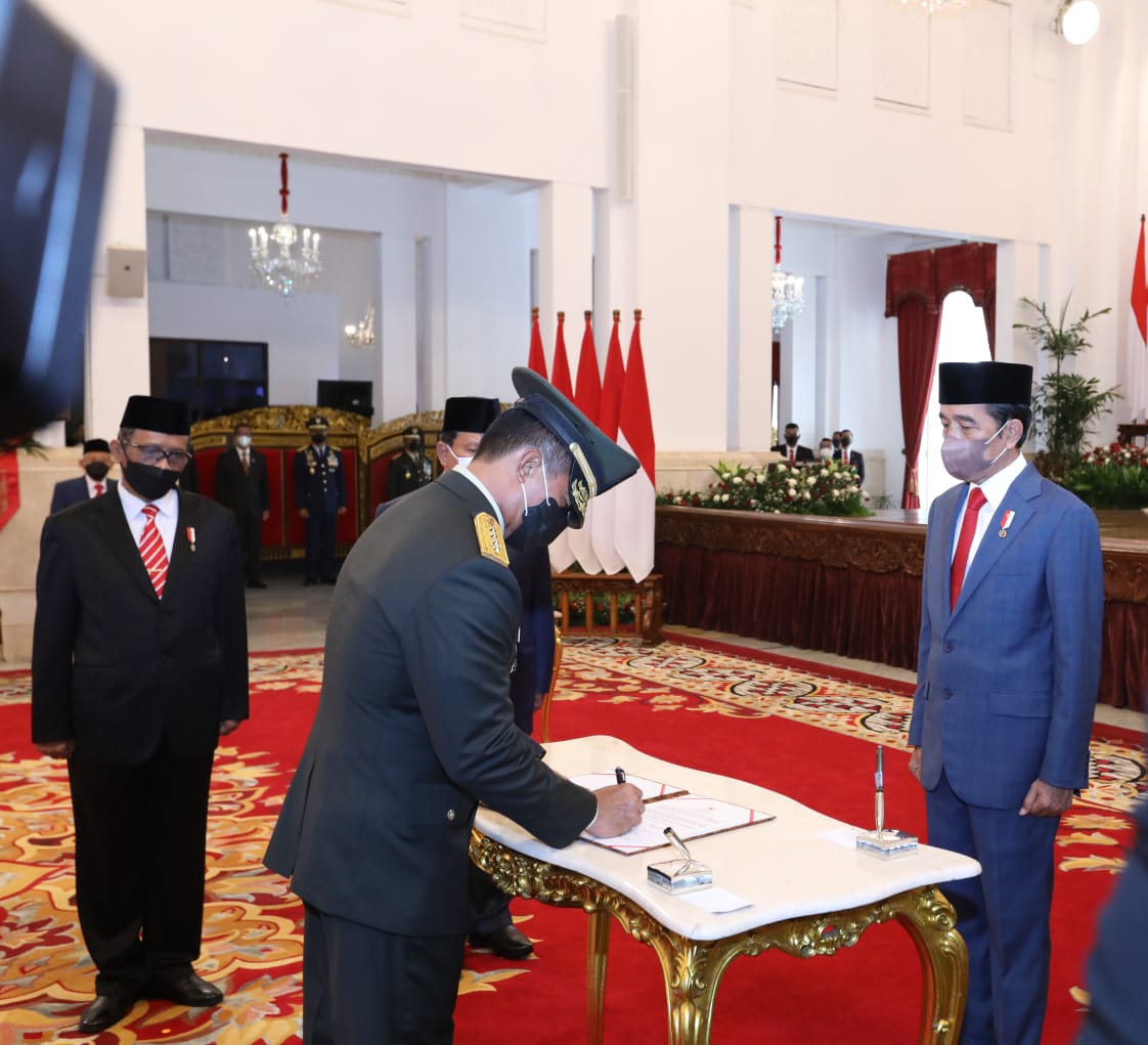 Jakarta – Pelitakota.id Presiden RI Ir. H. Joko Widodo melantik Jenderal TNI Andika Perkasa sebagai Panglima TNI, bertempat di Istana Negara, Jakarta, Rabu (17/11/2021).