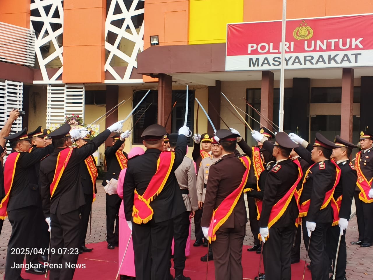 Probolinggo -TNT NEWS Upacara Pedang Pora menyambut kedatangan AKBP Rico Yumasri, S.I.K.,M.I.K., yang resmi menjabat sebagai Kapolres Probolinggo Kota menggantikan AKBP Oki Ahadian Purwono, S.I.K., M.H., Prosesi dilakukan di Halaman Polres Probolinggo Kota, Sabtu (19/04/2024) pagi.