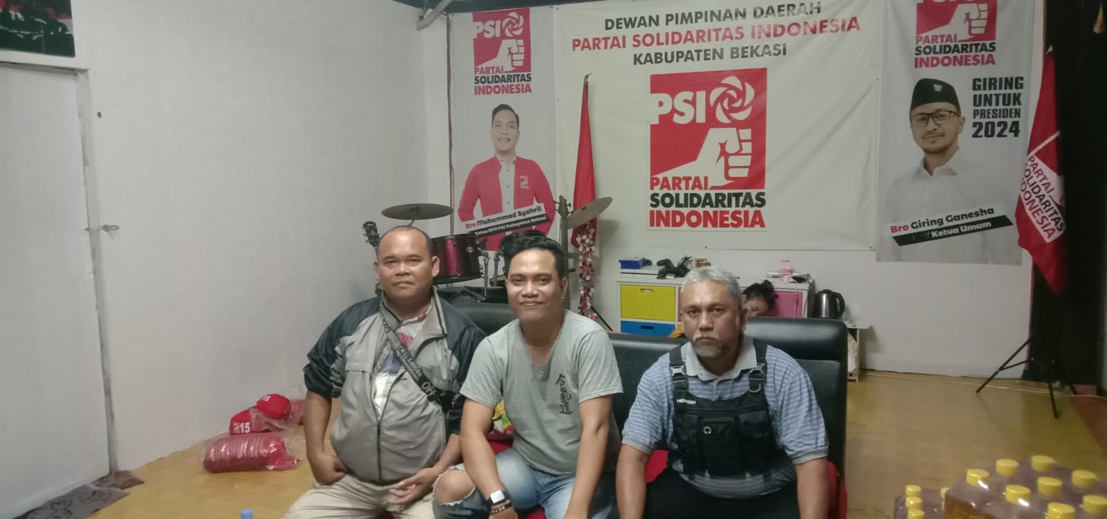 Peliatkota.id | Jumat, 3 Maret 2023. Malam sekitar pukul 20:00 WIB pada hari Kamis 2 Maret 2023, wartawan pelitakota.id dengan Suhunan Marpaung pimpinan organisasi masyarakat 5 Puak Indonesia Raya, atau 5 Puak Ganjarian, berkunjung ke kantor DPD PSI Kabupaten Bekasi, dan sangatlah beruntung kami disambut langsung oleh Broket, demikian sebutan akrab mereka sesama kader PSI, adapun arti Broket adalah Brother Ketua yaitu Muhammad Syahril yang juga Bacaleg DPR RI dari dapil kabupaten Bekasi, Karawang dan Purwakarta. Hadir juga selaku Bendara DPD Sis Murni Siregar Bacaleg DPRD tingkat 1, dan Sis Monica Sihombing Bacaleg DPRD kabupaten Bekasi.