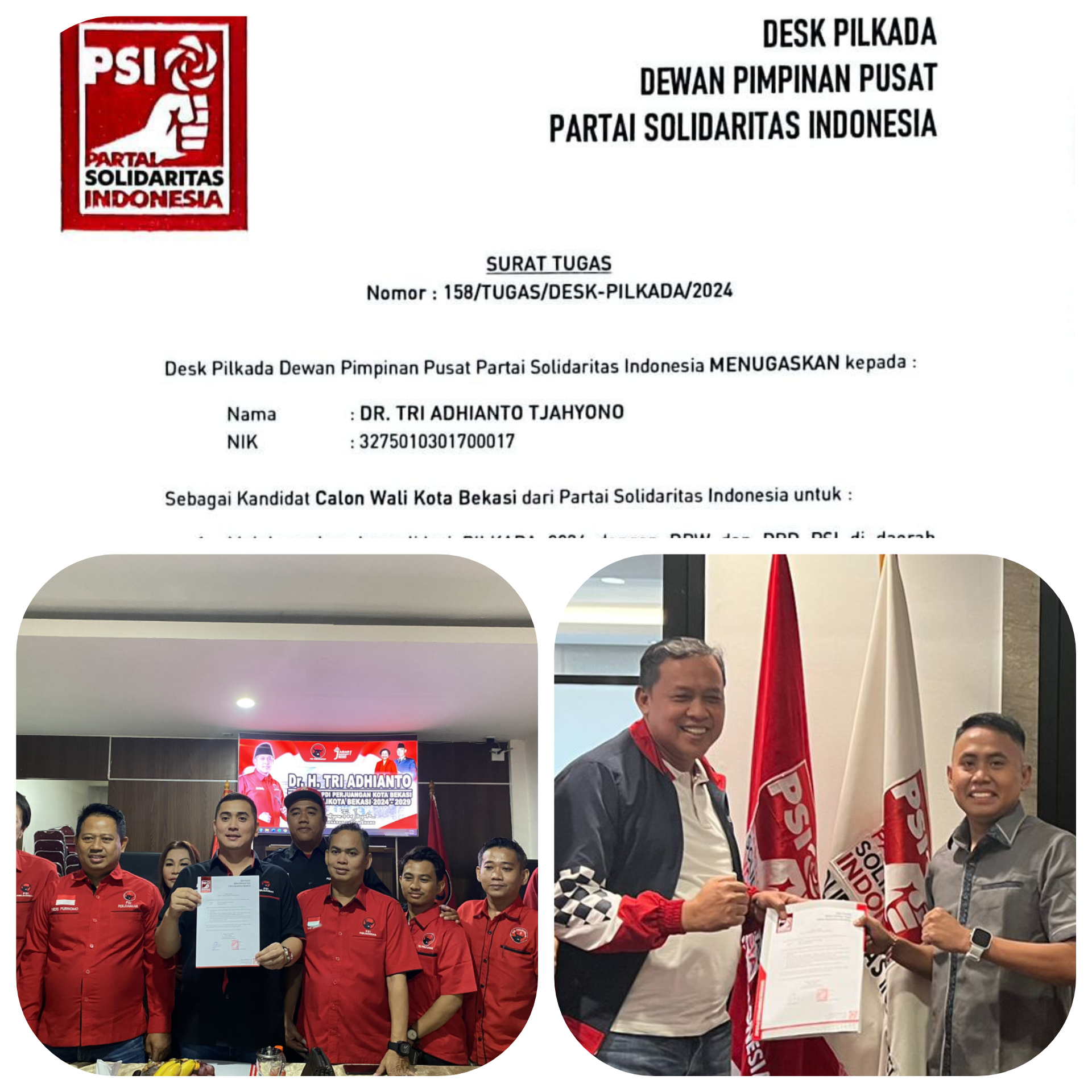 “Mas Tri Adhianto sudah mendapatkan surat tugas sebagai calon Wali Kota Bekasi dari DPP PSI. Ini adalah salah satu bentuk PSI, hasil dari kunjungan kami DPC PDI Perjuangan Kota Bekasi kepada DPD PSI Kota Bekasi.” jelasnya