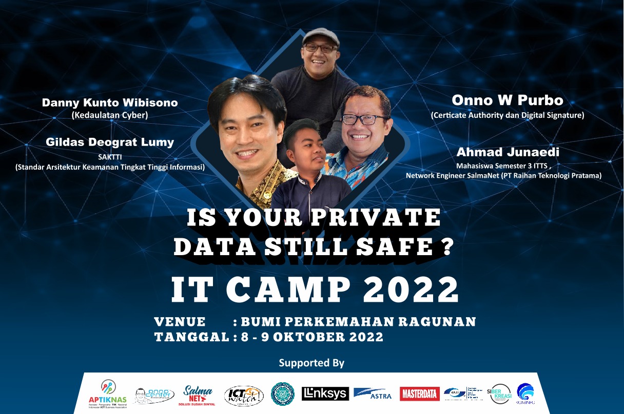 Kegiatan IT Camp 2022 kali ini didukung pula oleh KOMINFO, APJII, MASTERDATA, ICT WATCH, LINKSYS, SIBER KREASI (Gerakan Nasional Literasi Digital), ITTS (Institut Teknologi Tangerang Selatan) dan ASTRA.*