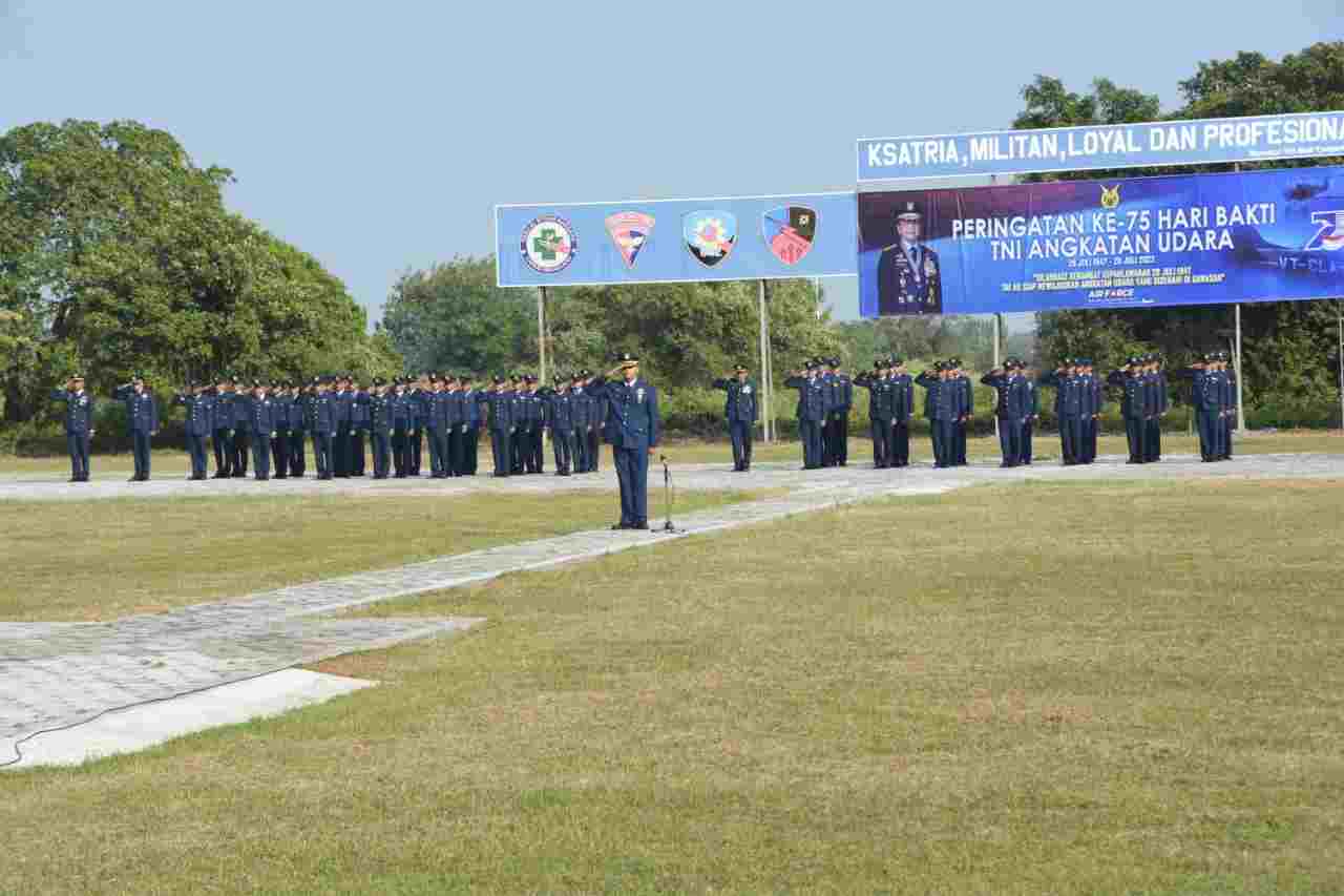 Magetan – Puncak Peringatan Ke-75 Hari Bakti TNI AU di lingkungan Lanud Iswahjudi, ditandai dengan pelaksanaan upacara di Lapangan Dirgantara Lanud Iswahjudi, Jumat (29/7), dipimpin langsung oleh Komandan Lanud Iswahjudi, Marsma TNI M. Untung Suropati, SE.