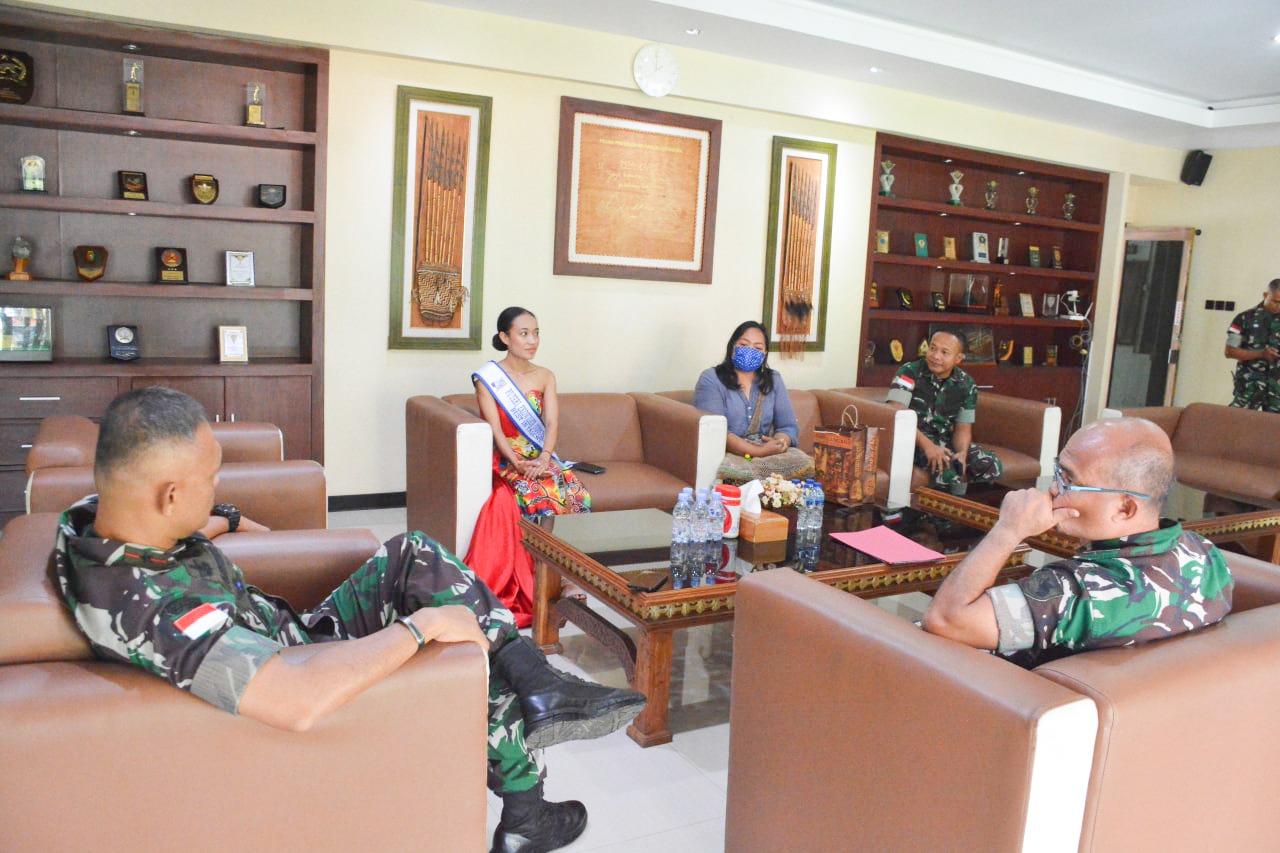 Jayapura – Setelah mengikuti ajang pemilihan Putera Puteri Ekowisata Indonesia Tahun 2022 yang digelar di Bali beberapa waktu lalu, Puteri Ekowisata Papua, Ezterlin Baransano menemui Danrem 172/PWY Brigjen TNI J.O Sembiring, bertempat di Makorem 172/PWY, Kota Jayapura, Papua, Senin (5/12).