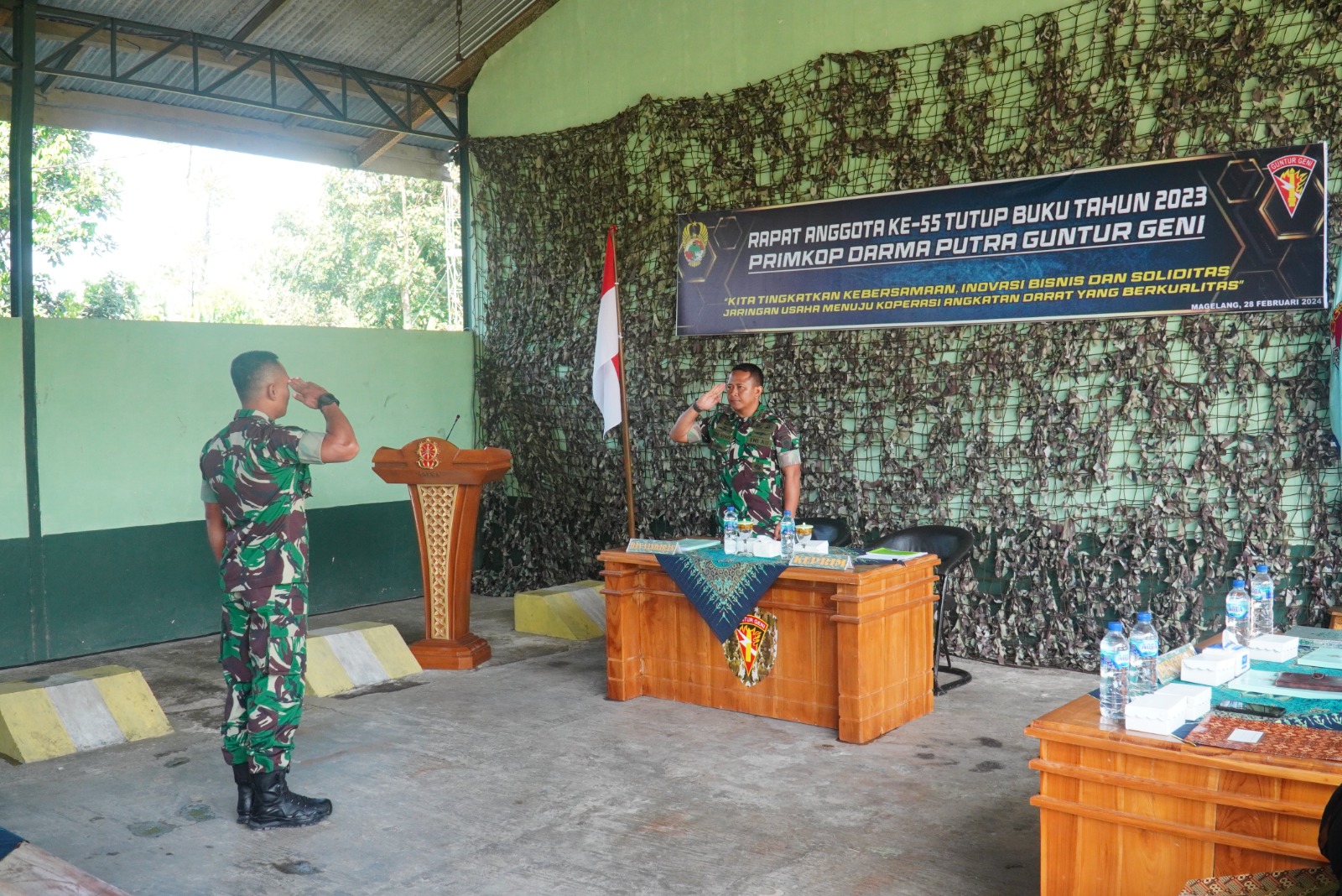 Magelang – Dalam rangka melaksanakan laporan pertanggungjawaban Pengurus Primer Koperasi (Primkop) Dharma Putra Guntur Geni, kegiatan Rapat Anggota Tahunan (RAT) tutup buku tahun 2023 dengan tema “Kita tingkatkan kebersamaan, inovasi bisnis dan soliditas jaringan usaha menuju koperasi Angkatan Darat yang berkualitas” bertempat di Asrama Yonarmed 11/GG/2/2 Kostrad Gelangan, Kec. Magelang Tengah, Kota Magelang Jawa Tengah, Rabu (28/02/2024).
