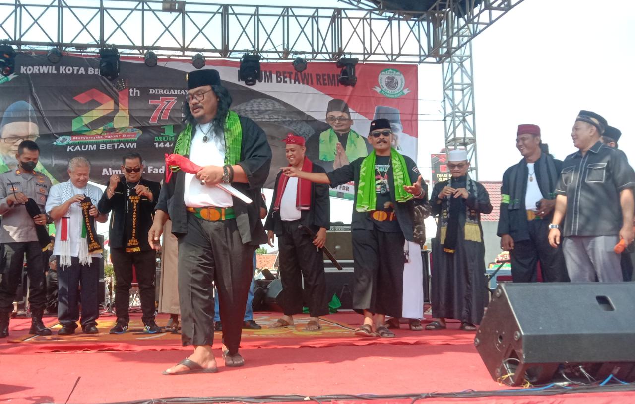 Kota Bekasi – Seluruh pengurus Gardu dan Koordinator Wilayah (Korwil) Forum Betawi Rempug (FBR) Kota Bekasi Rempug bareng merayakan Milad FBR ke-21, Sabtu (20/8). Perayaan hari jadi organisasi kedaerahan yang memiliki jargon ‘Jaga Kampung Dewek’ ini dihadiri Plt Wali Kota Bekasi Tri Adhianto.