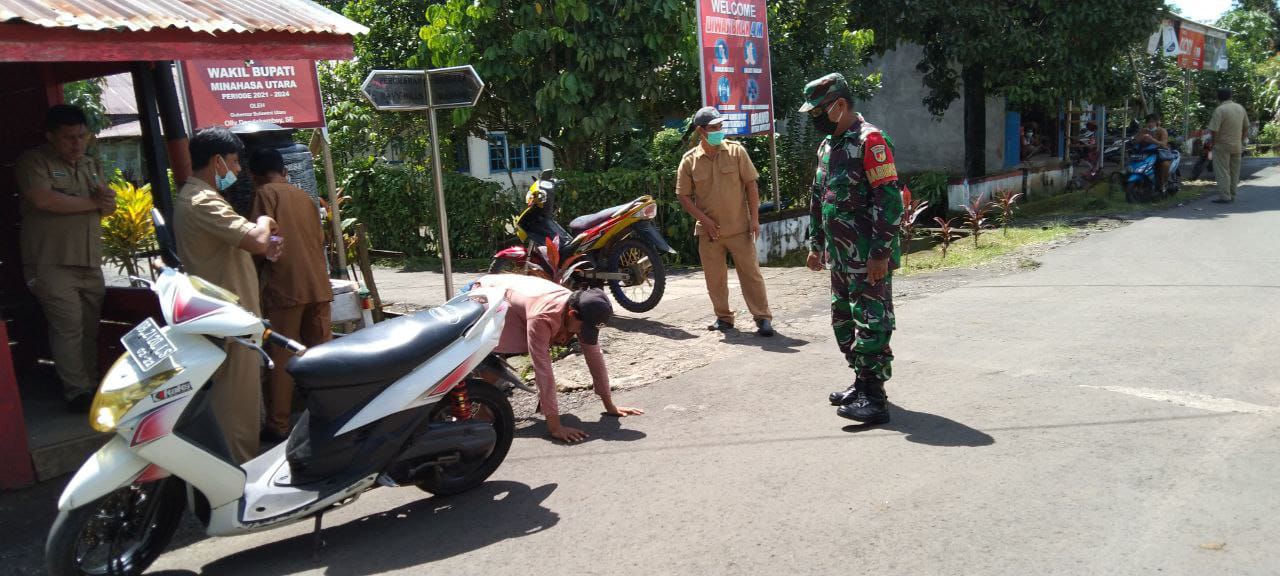 Menurut Babinpotdirga Lanud Sam Ratulangi Peltu Djoko Tri Suryono, kegiatan diawali dengan menghimbau masyarakat yang melintas di jalan raya untuk tetap melaksanakan protokol kesehatan demi keselamatan diri dan keluarga. “Kami memberikan sanksi menyanyikan lagu nasional atau push-up bagi yang kedapatan tidak mengenakan masker. Supaya jera dan mawas diri betapa pentingnya mengantisipasi musuh yang tidak kelihatan ini dengan mengenakan masker!” tandas Babinpotdirga Lanud Sam Ratulangi (di TNI AD dikenal dengan sebutan Babinsa, TNI AL sebagai Babinpotmar).