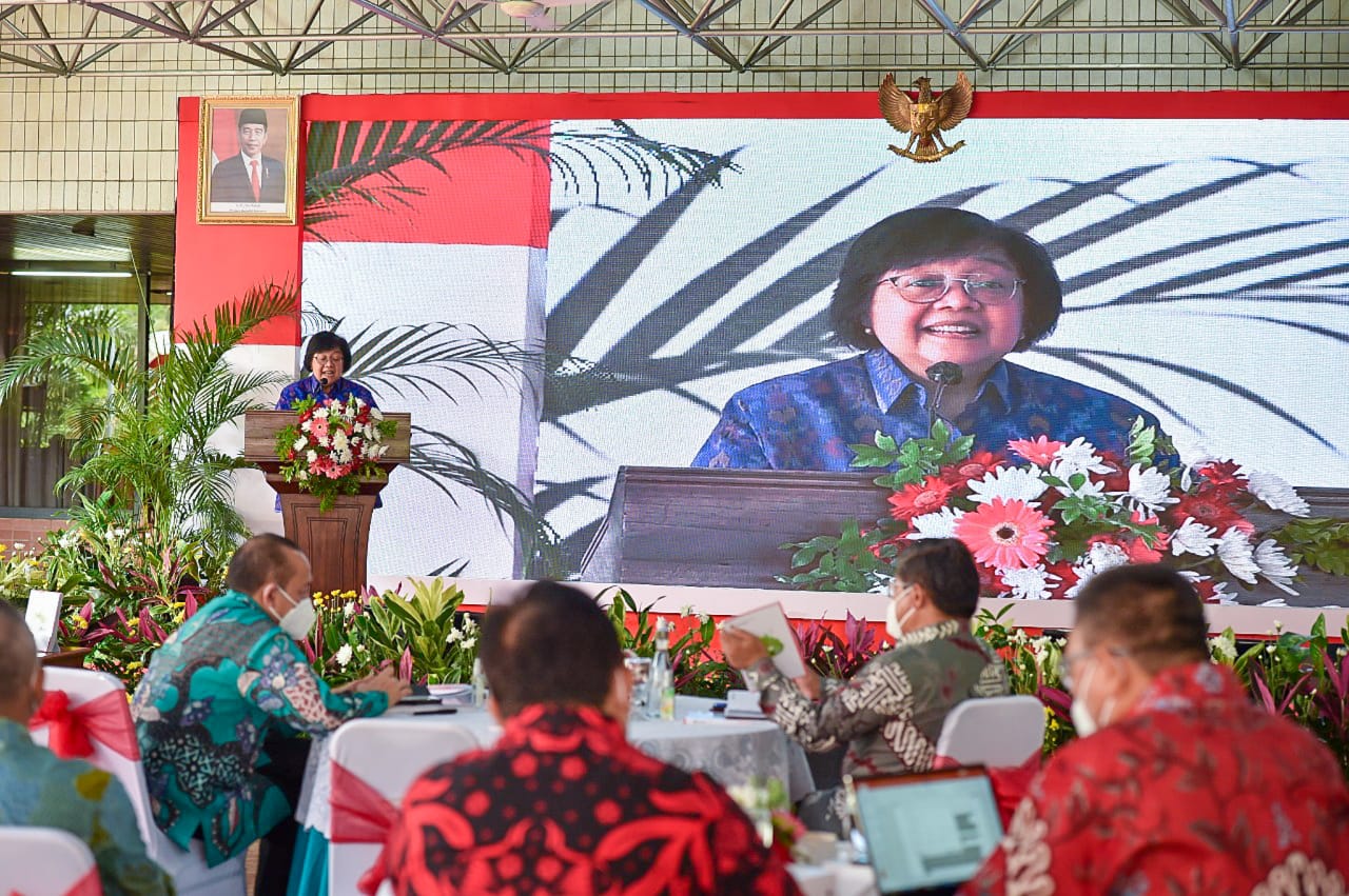 “Pandemi Covid-19 memberikan ruang kita untuk berkontemplasi, dan semakin menegaskan pertautan keseimbangan ekonomi-ekologi-sosial untuk pembangunan nasional. Saya kembali tegaskan, upaya pemulihan lingkungan melekat dengan langkah pembangunan ekonomi,” kata Menteri Siti pada acara yang dihadiri lebih dari 1000 peserta.