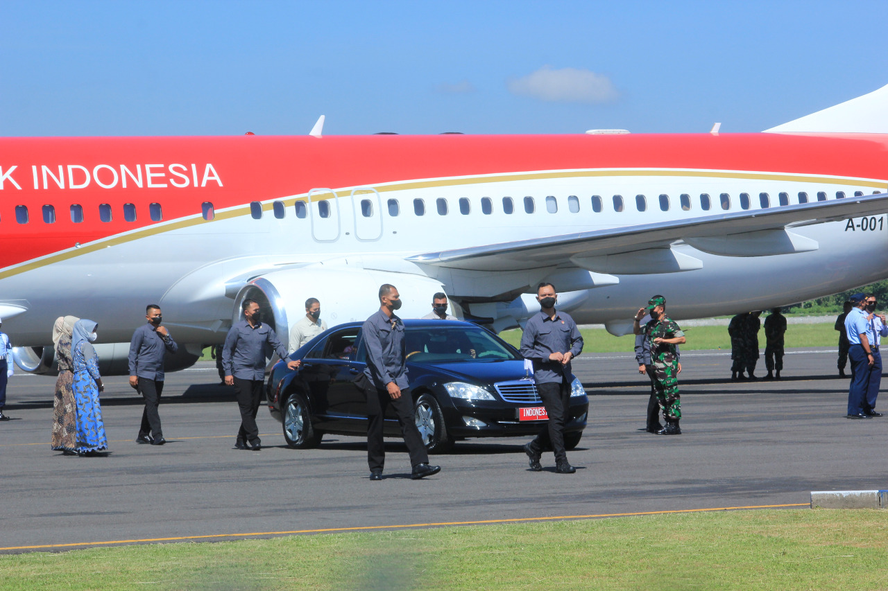 Dengan menggunakan pesawat Kepresidenan BBJ-2 A-001 dari Lanud Halim Perdanakusuma, rombongan tiba di Lanud Iswahjudi tepat pukul 08.55 WIB, kemudian langsung melanjutkan kunjungan kerjanya ke wilayah Madiun dan Nganjuk.