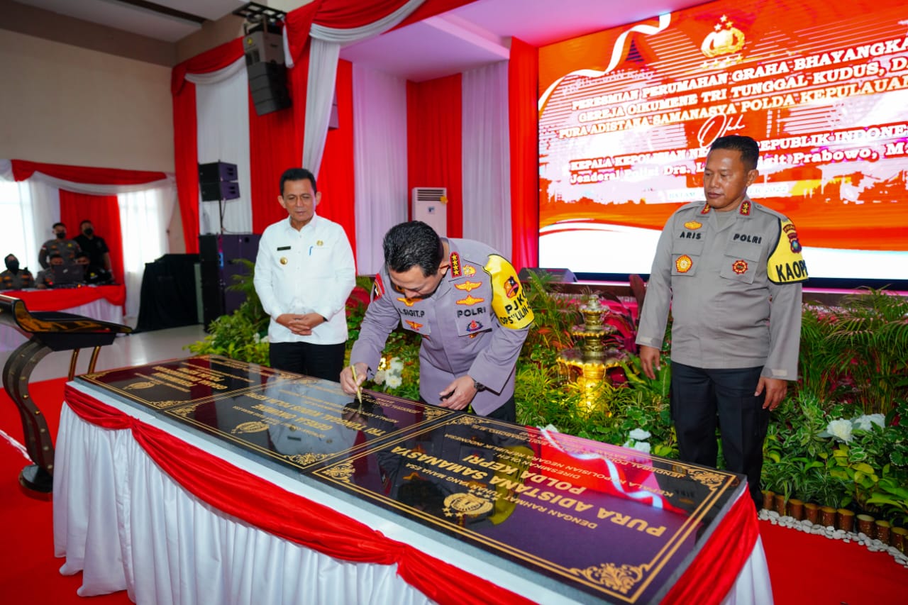 Kepri – PK NEWS Kapolri Jenderal Listyo Sigit Prabowo meninjau sekaligus meresmikan pembangunan rumah ibadah dan tempat tinggal bagi personel Kepolisian di Kepulauan Riau (Kepri), Jumat, 23 Desember 2022.