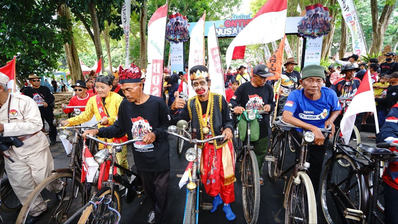 BANYUWANGI- Ribuan pecinta sepeda tua atau onthel berpartisipasi dalam Festival Onthel Nusantara yang digelar di Banyuwangi. Mereka mengayuh sepeda tuanya sejauh 12 kilometer mengelilingi rute perkotaan dan sejumlah destinasi ikonik di Banyuwangi, Minggu (26/5/2024).