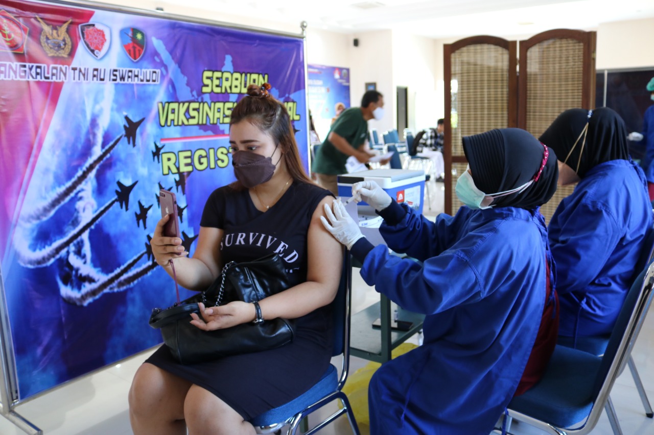Dukung percepatan pembentukan herd immunity di masyarakat, Lanud Iswahjudi secara rutin terus gelar serbuan vaksinasi di RSAU dr. Efram Harsana (RSEH) tercatat 538 warga berhasil divaksin hari ini. Selasa (2/11/21).