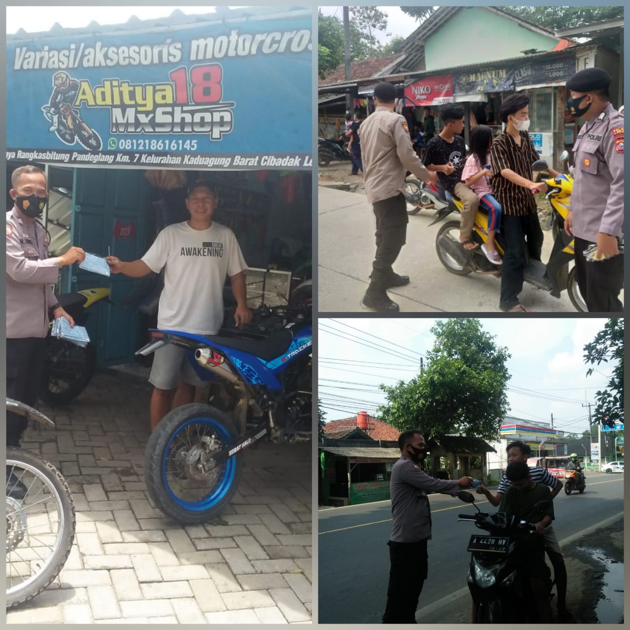 Lebak. pandemi covid-19 yang belum berakhir Personil Polsek Cibadak, terus berikan Himbauan kepada masyarakat tentang pentingnya Prokes dan juga membagikan Masker gratis untuk Warga masyarakat masyarakat yang melintas di Kampung Baros Desa Kaduagung Barat dan sekitarnya. Kamis (02/12/2021)