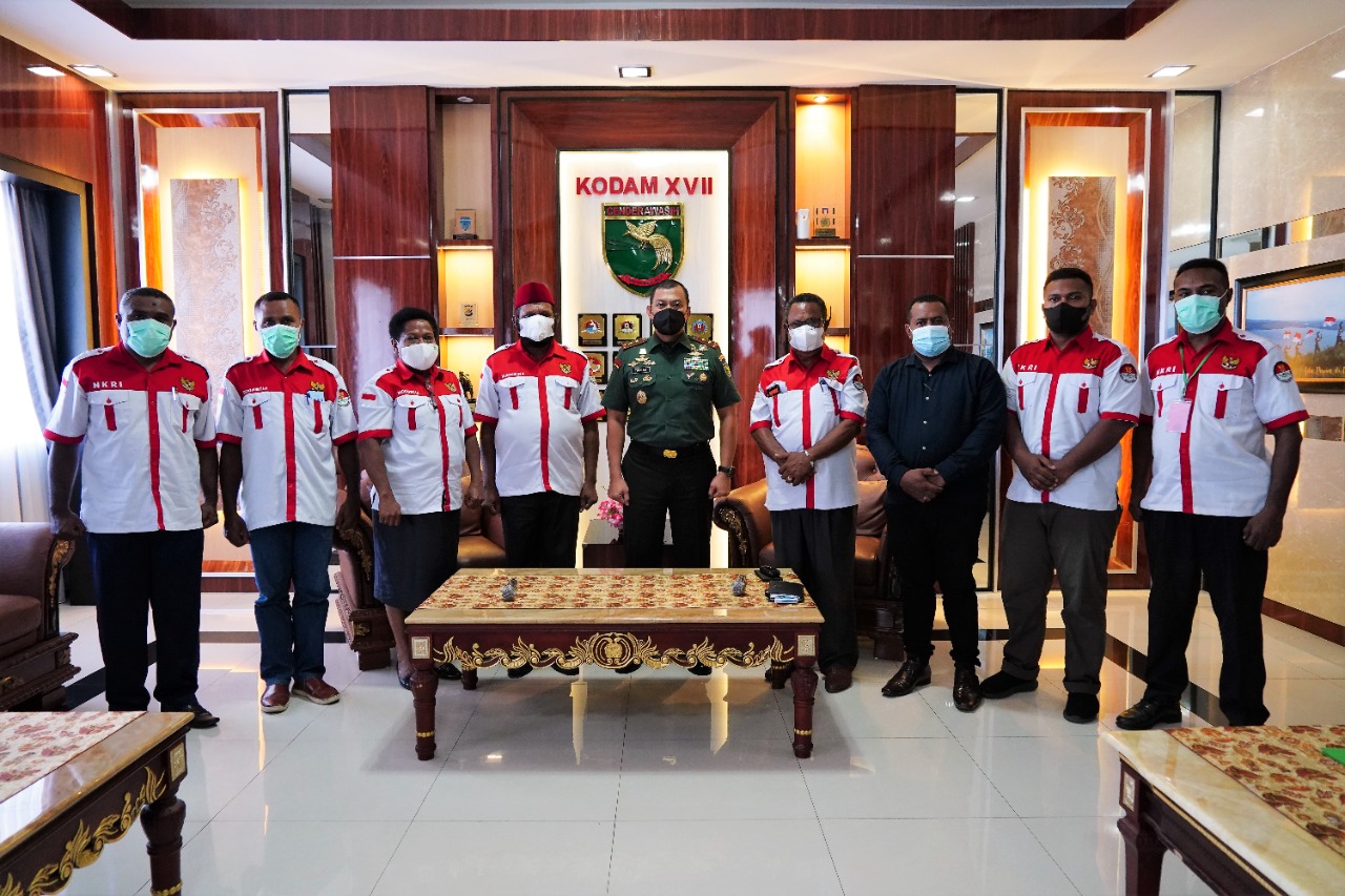 Jayapura – Ketua Umum Gerakan Rakyat Cinta Indonesia (DPN Gercin Indonesia) Hendrik Yance Udam bersama Ketua Panitia Rakernas I Gercin Indonesia Dr Drs Yesaya Buinei MM dan rombongan secara resmi beraudensi dengan Mantan Komandan Jenderal Kopassus (Danjen Kopassus). Dimana saat ini Mayor Jenderal TNI Teguh Muji Angkasa SE MM sudah menjabat Panglima Kodam XVII Cenderawasih di Makodam Jayapura.