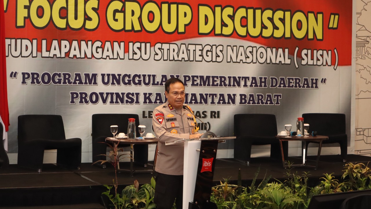 PONTIANAK, KALBAR – Kepala Kepolisian Daerah Kalimantan Barat Irjen Pol Suryanbodo Asmoro menghadiri Focus Group Discussion pada Kegiatan Studi Lapangan Isu Strategis Nasional (SLISN) Program Pendidikan Reguler Angkatan (PPRA) LXIII Tahun 2022.