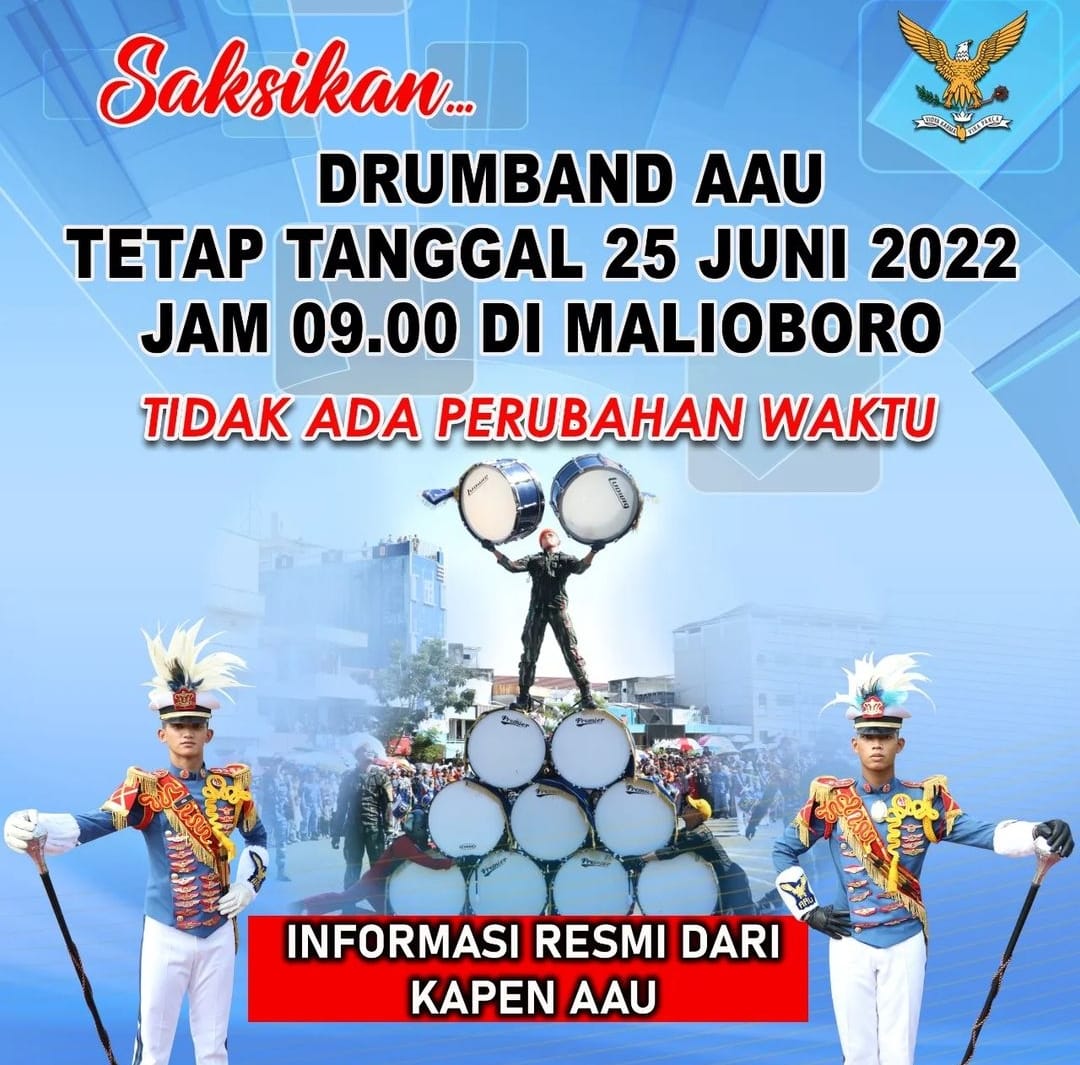 Sementara itu, Kepala Penerangan AAU menyampaikan kepada seluruh masyarakat Jogjakarta bahwa berita tentang penundaan waktu Kirab dan Drumband AAU adalah HOAX. Yang benar tetap pada hari Sabtu, 25 Juni 2022, pukul 09.00 WIB, di sepanjang jalan Malioboro Yogyakarta.