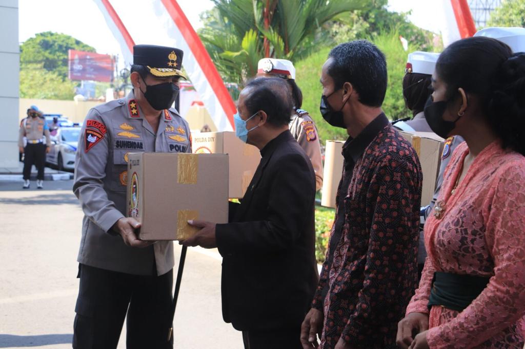“Bantuan telah diserahkan oleh bapak Kapolda kepada 5 tokoh masyarakat dan tokoh agama, kemudian sebanyak 3000 paket bantuan didistribusikan ke 5 kabupaten/kota dan telah dilepas di halaman Mapolda DIY oleh bapak Kapolda”, pungkasnya.