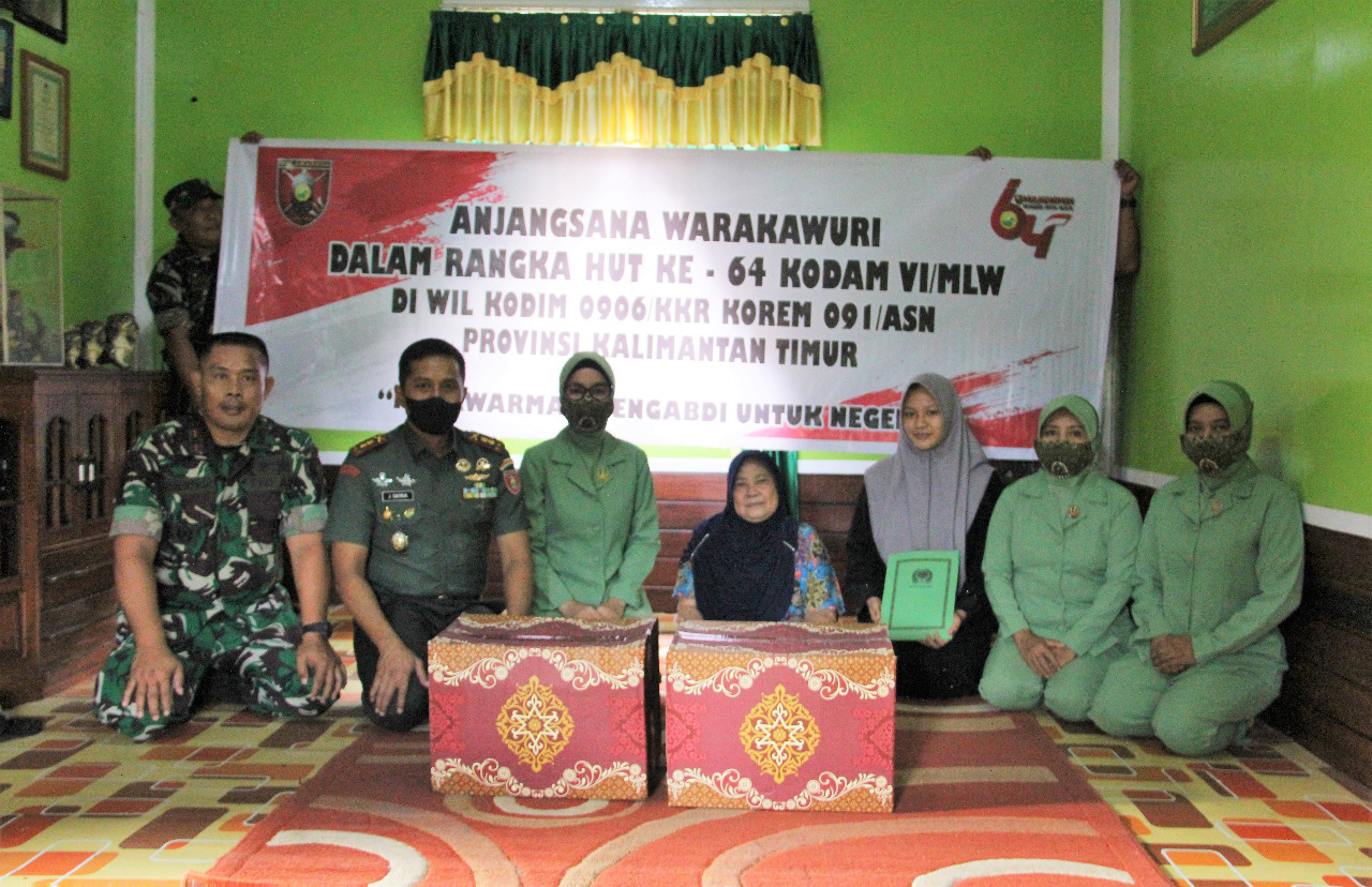 Kutai Kartanegara – Sambut HUT Kodam VI/Mulawarman (Mlw) ke- 64, Kodim 0906/Kutai Kartanegara gelar anjangsana kekediaman Warakauri yang berada diseputaran kecamatan Tenggarong dengan dipimpin langsung Komandan Kodim 0906/Kutai Kartanegara Letkol Inf. Jeffry Satria didampingi Ketua Persit KCK Cabang XIII’ Ny. Wulan Satria. Kamis (14/7/2022).