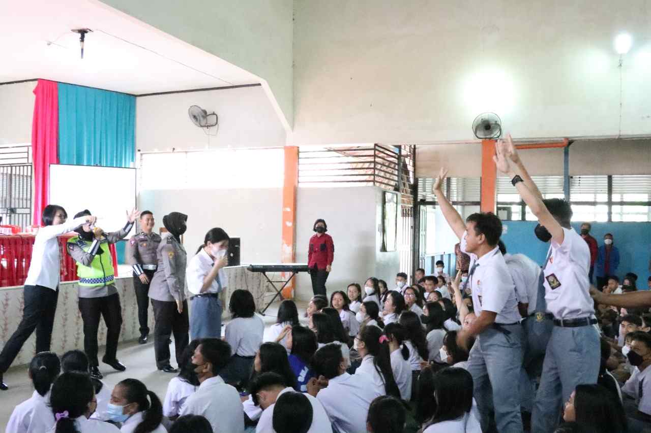 Pelajar SMA Karya Sekadau terlihat antusias dengan program ini. Mereka dengan semangat mengikuti sesi kegiatan. Saat Briptu Yolanda yang merupakan alumnus memberi arahan, para pelajar kompak memberi tepuk tangan.