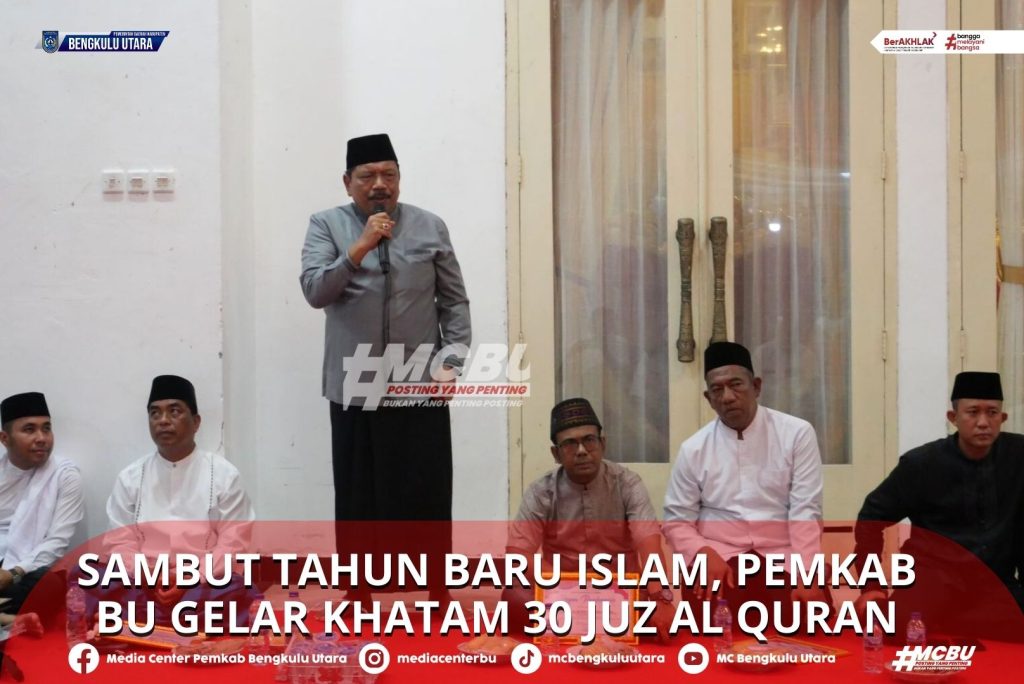 BENGKULU UTARA, PELITAKOTA.ID – Pemerintah Daerah Kabupaten Bengkulu Utara melaksanakan acara khatam Alquran 30 juz pada 1 Muharam 1446 H, yang bertempat di Balai Daerah Kabupaten Bengkulu Utara. Acara ini diselenggarakan untuk menyambut Tahun Baru Islam dengan penuh syukur dan harapan, kegiatan dilaksanakan di Balai Daerah Arga Makmur. Sabtu (6/7/2024). Malam.