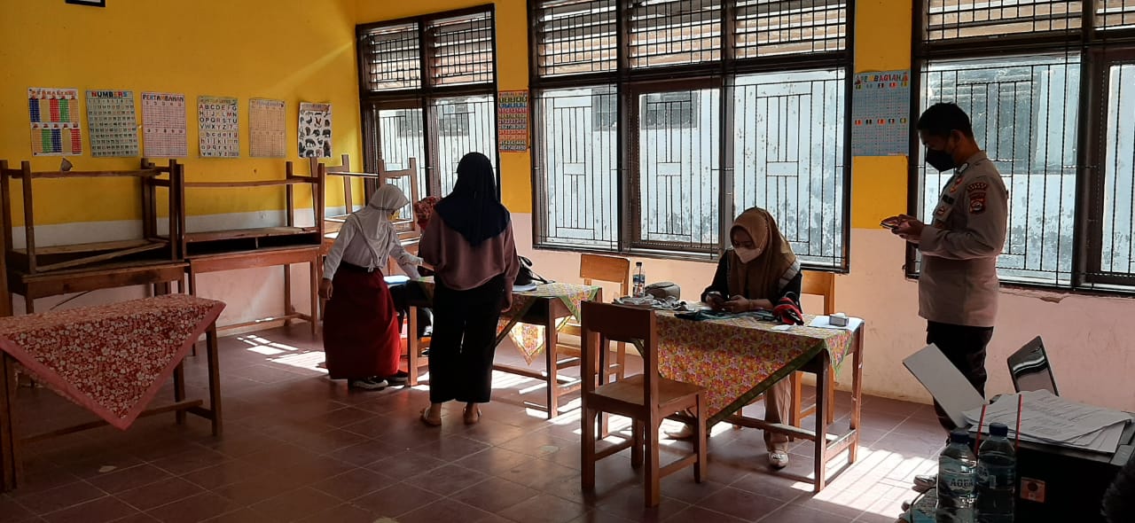 Kasat Binmas mengajak dan berkoordinasi dengan Korwil Dinas Pendidikan Rangkasbitung dan Pihak Sekolah dalam pelaksanaan giat Vaksinasi umur 6 tahun sampai dengan 11 tahun.