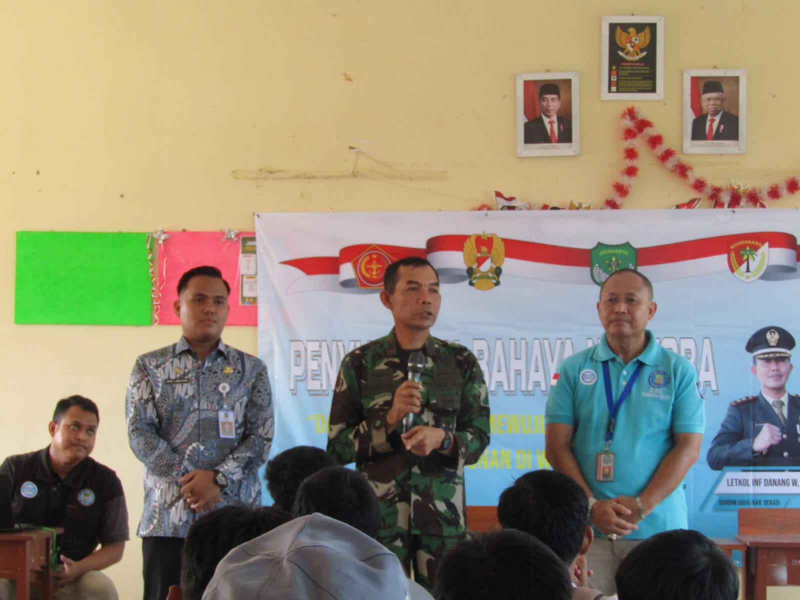 Bekasi- Gerakan Pencegahan pemberantasan penyalahgunaan dan peredaran gelap narkotika juga di gaungkan melalui TMMD Ke ,119 Kodim 0509 Kabupaten Bekasi, kegiatan sosialisasi dan penyuluhan di buka oleh Wadanramil 07 Cikarang Kapten Inf Ruhiyat,. menurut Dia penyuluhan ini bertujuan agar Kabupaten Bekasi benar – benar bersih dari narkoba.