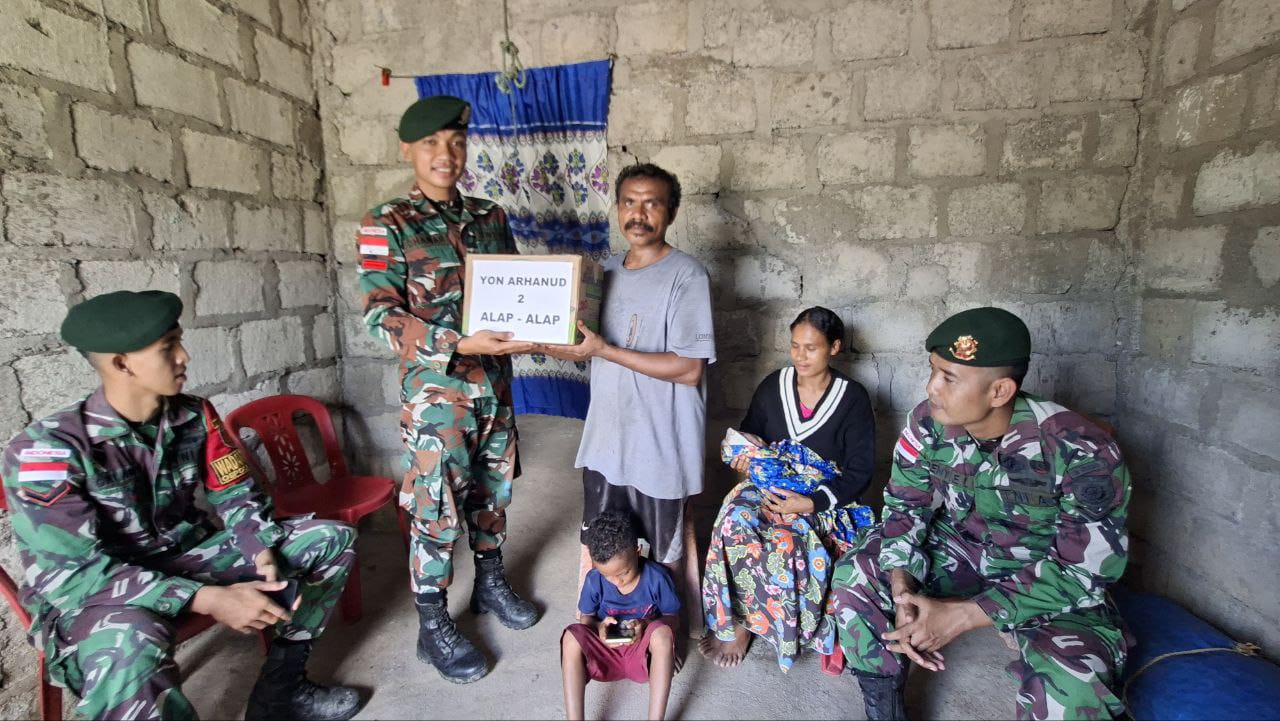 Kupang – Prajurit Satgas Pamtas RI–RDTL Sektor Barat Yonarhanud 2 Kostrad kembali menunjukkan kepedulian kepada masyarakat di wilayah perbatasan dengan menyalurkan bantuan sembako kepada warga Desa Natemnanu, Kecamatan Amfoang Timur, Kabupaten Kupang, Minggu (15/3).