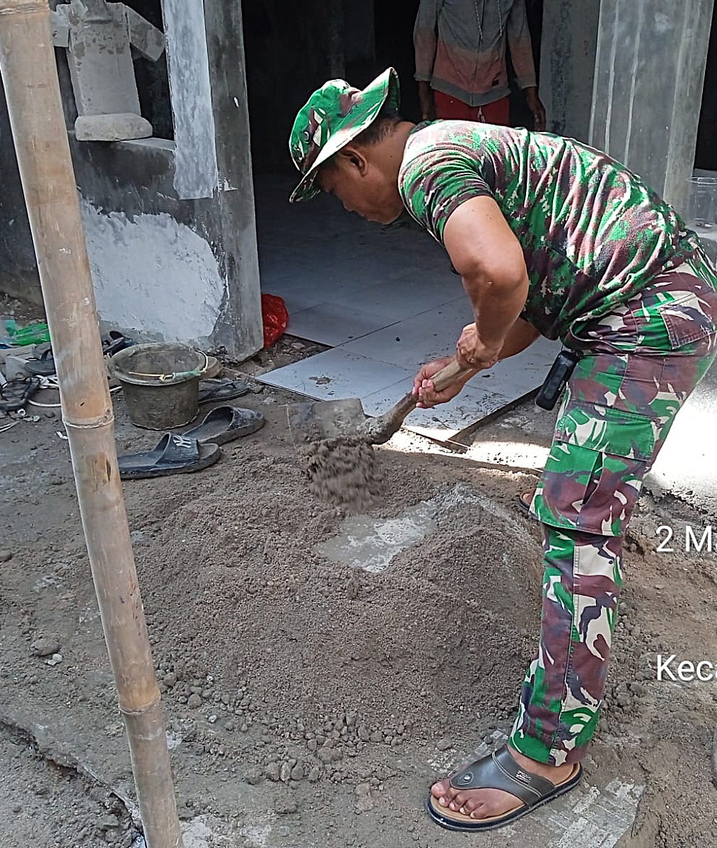 Renovasi ini meliputi perbaikan struktur bangunan agar lebih kokoh, aman, dan layak huni. Personel Satgas TMMD bersama warga setempat bergotong royong menggunakan peralatan pertukangan yang tersedia.