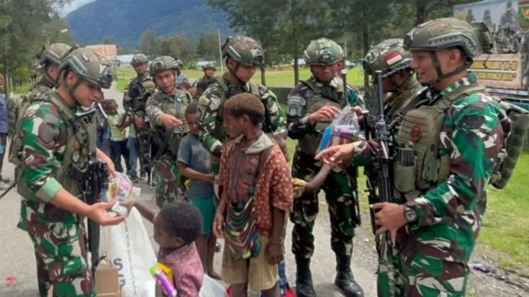 Ilaga – Satgas Yonif 323 Kostrad terus menunjukkan kepeduliannya terhadap masyarakat di wilayah tugasnya. Melalui TK Kosatgas dan Kodim Persiapan, personel Satgas berbagi kebahagiaan dengan anak-anak Kampung Kago, Distrik Ilaga, Kabupaten Puncak, Papua Tengah, dengan membagikan makanan dan permen, Rabu (12/02/2025).