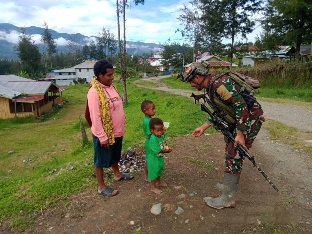 Puncak – Satgas Yonif 323 Kostrad melaksanakan bakti sosial di Kampung Yegerbaga, Distrik Ilaga, Kab. Puncak, Papua Tengah, Sabtu (18/1/2025).