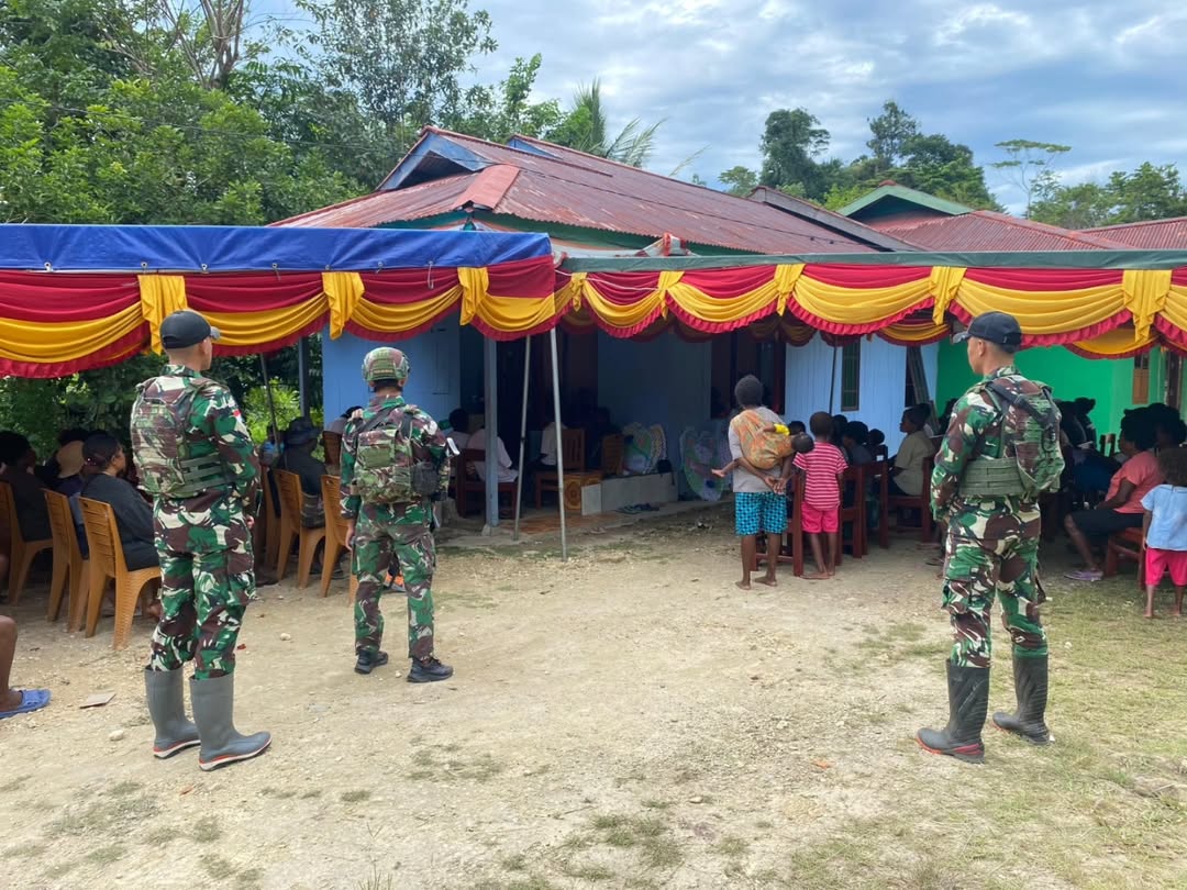 Kampung Fanakario – Satgas Yonif 501 Kostrad menunjukkan kepeduliannya dengan menghadiri pemakaman salah satu warga Kampung Fanakario yang meninggal dunia. Kehadiran prajurit TNI dalam acara ini menjadi bukti eratnya hubungan antara Satgas dan masyarakat setempat, serta wujud solidaritas di luar tugas militer. Rabu ( 12/2/ 2025).