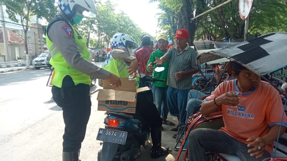 Pada kesempatan itu pula, para Abang becak menyampaikan terimakasih sebesar besarnya kepada polisi yg sudah peduli kepada *orang kennik* meskipun hanya nasi bungkus dan air mineral, kami senang dan bangga, itu sangat berarti bagi kami, rutin tiap hari Jum’at Polisi polisi ini menyapa kami disini mereka yg baik, merakyat, humanis, menyapa tidak sombong, menyampaikan himbauan di jalan….. dek pak Mashudi dkk … Mator sakalangkong.