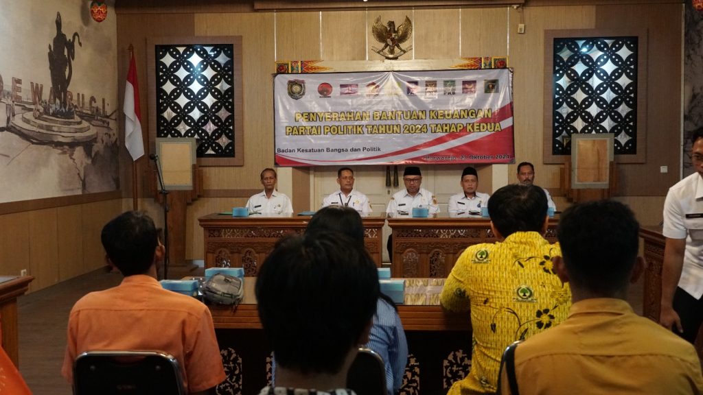 “Pemberian Bantuan Keuangan Partai Politik dilakukan setelah memprioritaskan pemenuhan belanja urusan pemerintahan wajib dan belanja urusan pemerintahan pilihan. Pemberian Bantuan Keuangan Partai Politik ditujukan untuk menunjang pencapaian sasaran program, kegiatan dan subkegiatan pemerintah daerah dalam rangka mendukung terselenggaranya fungsi pemerintahan, pembangunan, dan kemasyarakatan dengan memperhatikan asas keadilan, kepatutan, rasionalitas, dan manfaat untuk masyarakat,” bebernya, usai penyerahan bantuan, di Ruang Bagelen Setda Kabupaten Purworejo, Rabu (23/10/2024).