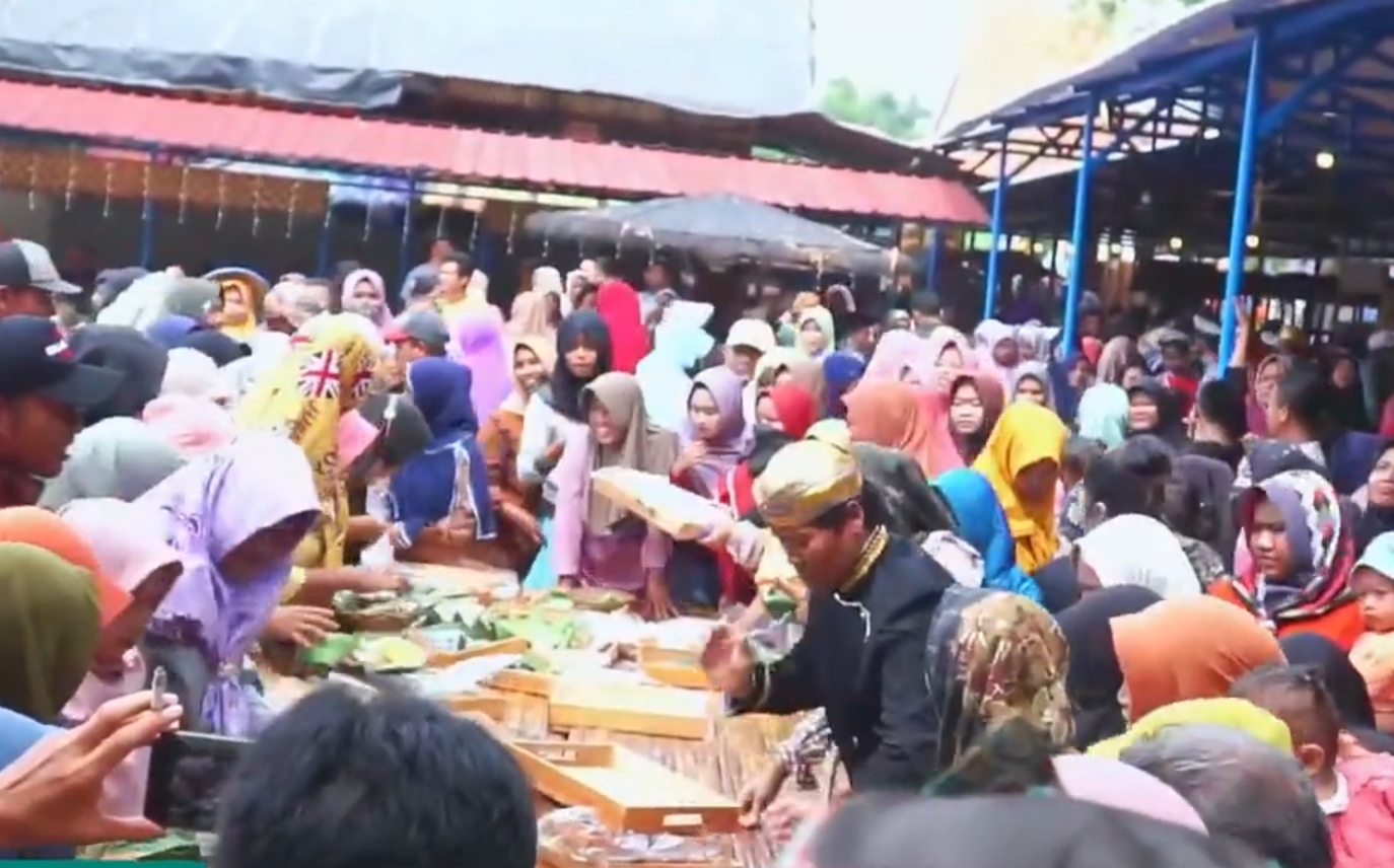 REMBANG – Iring-iringan pejalan kaki mengenakan pakaian adat Jawa nampak meramaikan pembukaan kembali wisata Pasar Mbrumbung di Dukuh Randugosong, Desa Banggi, Kecamatan Kaliori, Sabtu (8/6/2024). Mereka berjalan kaki, dengan membawa bermacam jajanan tradisional seperti klepon, getuk, dan lainnya.