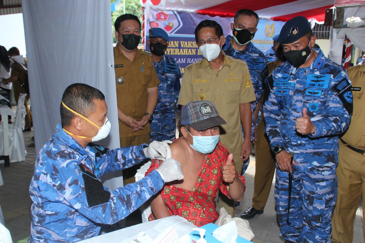 Manado – Pelitakota.id Komandan Lanud Sam Ratulangi Marsma TNI Mohamad Satriyo Utomo, S.H., menginisiasi kegiatan Serbuan Vaksinasi yang diikuti dengan penyerahan bantuan sosial oleh Pangkalan TNI AU Sam Ratulangi di wilayah Bitung, Sulawesi Utara, Selasa (19/10/2021).