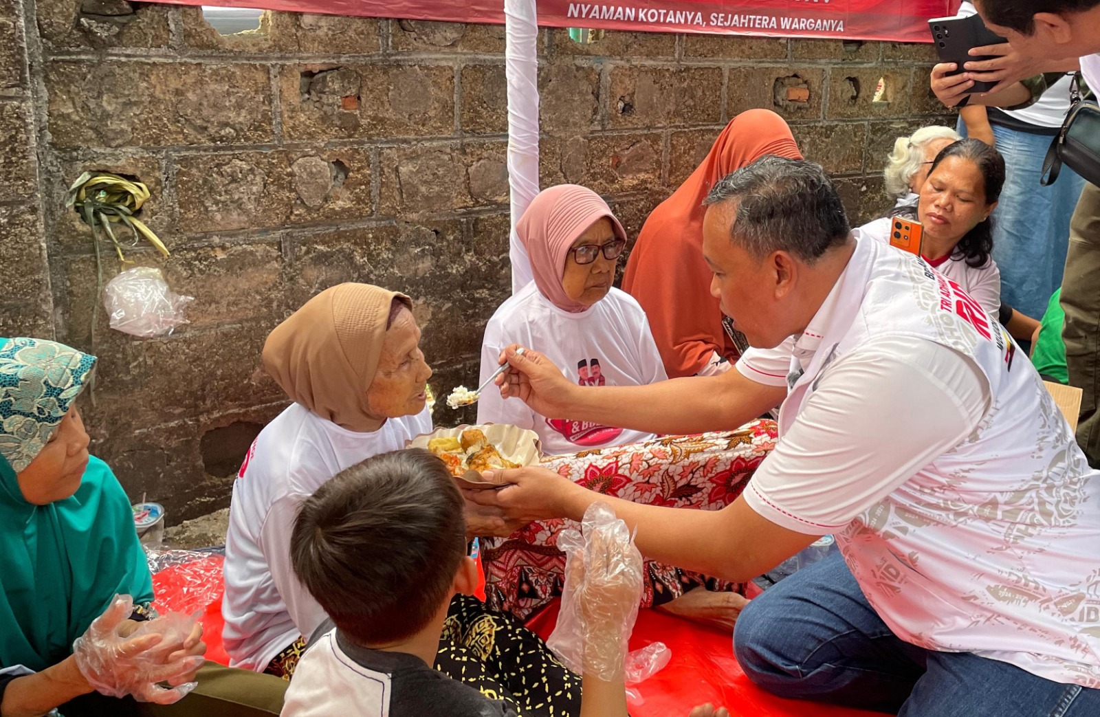 Di akhir acara, Tri Adhianto diundang untuk makan bersama warga dengan nasi liwet beralaskan daun pisang. Ia juga menunjukkan rasa hormat dengan menyuapi secara simbolis seorang lansia bernama Iroh (86), sebagai bentuk penghormatan kepada yang lebih tua. (R_Kfs74D/Blue Cross)