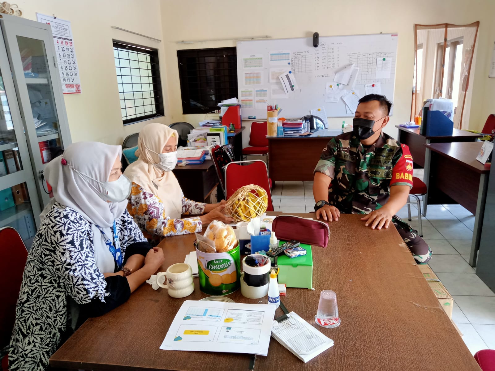 Surakarta, Dalam rangka meningkatkan sinergitas di wilayah binaanya, Babinsa Kelurahan Danukusuman Koramil 03/Serengan Kodim 0735/Surakarta Serda Tito melaksanakan Komsos di kantor Petugas Lapangan Keluarga Berencana (PLKB) bersama ibu khasanah dan Kistini selaku ketua dan wakilnya yang berada di wilayah jln. Rehab Kelurahan Joyotakan Kecamatan Serengan, Kota Surakarta. Senin pukul 10.00 Wib (7/11/2022).