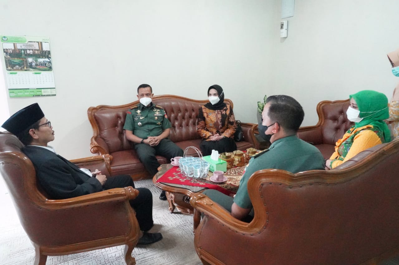 Purwokerto – Perkokoh Sinergitas diwilayah khususnya kerukunan umat beragama, Danrem 071/Wijayakusuma Kolonel Inf Yudha Airlangga, S.E., dengan didampingi Ketua Persit Kartika Chandra Kirana Koorcab Rem 071 PD IV/Diponegoro Ny. Natania Yudha Airlangga, Kasrem 071/Wijayakusuma Letkol Inf Candra, S.E., M.I.Pol., dan Wakil Ketua Persit Kartika Chandra Kirana Koorcab Rem 071 PD IV/Diponegoro Ny. Wiwin Candra, lakukan kunjungan silaturahmi ke Ketua FKUB Banyumas yang juga Rektor Universitas Islam Negeri Prof. Dr. Safrudin Zuhri (UIN Saizu) Purwokerto Dr. H. Mohammad Roqib, M.Ag., Rabu (20/7/2022) di Universitas Islam Negeri Prof. Dr. Safrudin Zuhri (UIN Saizu) Purwokerto, Banyumas.