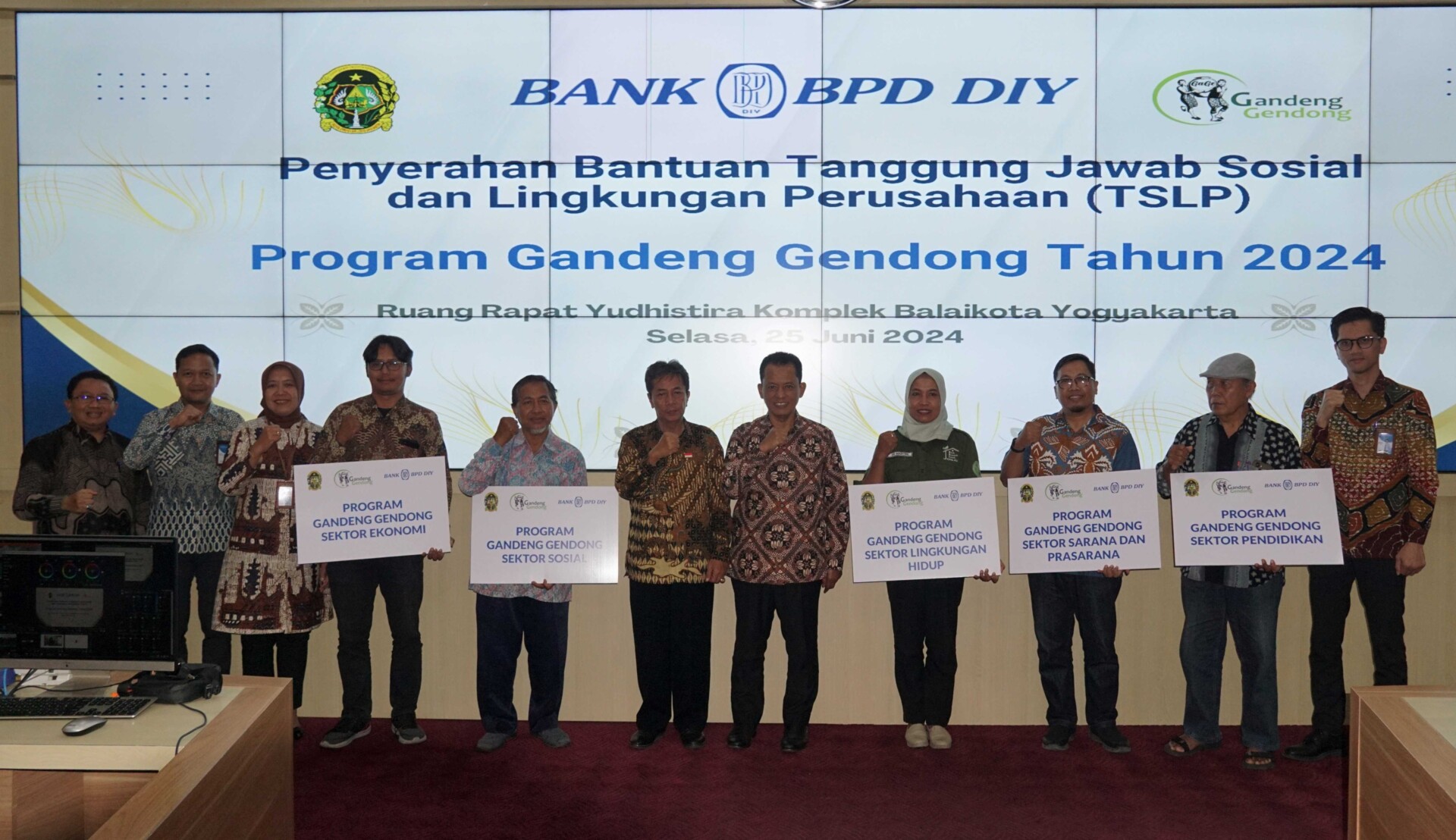 UMBULHARJO- Pemerintah Kota Yogyakarta menggandeng Bank BPD DIY untuk mendukung program gandeng gendong di masyarakat. Dukungan itu diwujudkan dengan pemberian bantuan tanggung jawab sosial lingkungan perusahaan (TSLP) dari Bank BPD DIY untuk program gandeng gendong. Bantuan itu menyasar sektor sosial, pendidikan, ekonomi dan lingkungan hidup di Kota Yogyakarta.