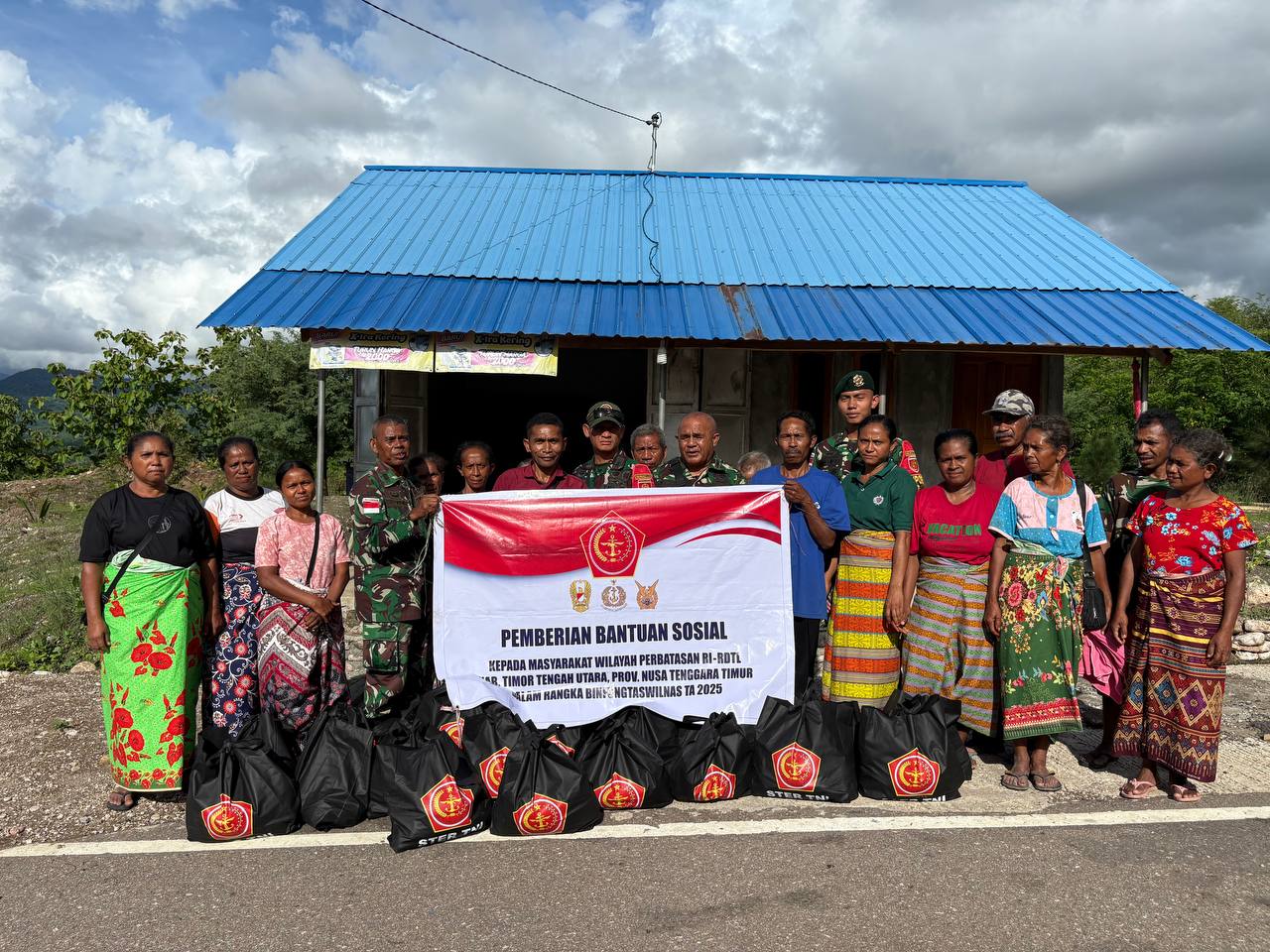 23 Desember 2025,Inbate, Kabupaten TTU — Sinergi yang luar biasa terwujud di wilayah perbatasan! Satgas Pamtas RI-RDTL Sektor Barat Yonarhanud 2 Kostrad Pos Inbate bersatu tangan dengan anggota Kodim 1618/TTU memberikan Paket Sembako kepada masyarakat di Desa Inbate, Kec. Bikomi Nilulat, Kab. TTU pada hari Sabtu, 20 Desember 2025.