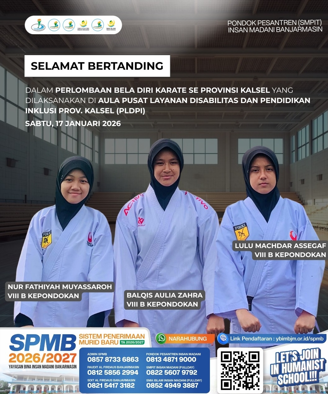 Untuk diketahui” Dalam kegiatan tersebut”Lulu Muchdar Assegaf siswi berprestasi kelas VIII B yang mewakili Sekolah SMPIT Insan Madani Pesantren Madrasah Tsanawiyah Tahfiz Qur,an meraih Juara 2 Pemula Putri pada Kejuaraan Open Festival Karate Se-Provinsi Kalsel.