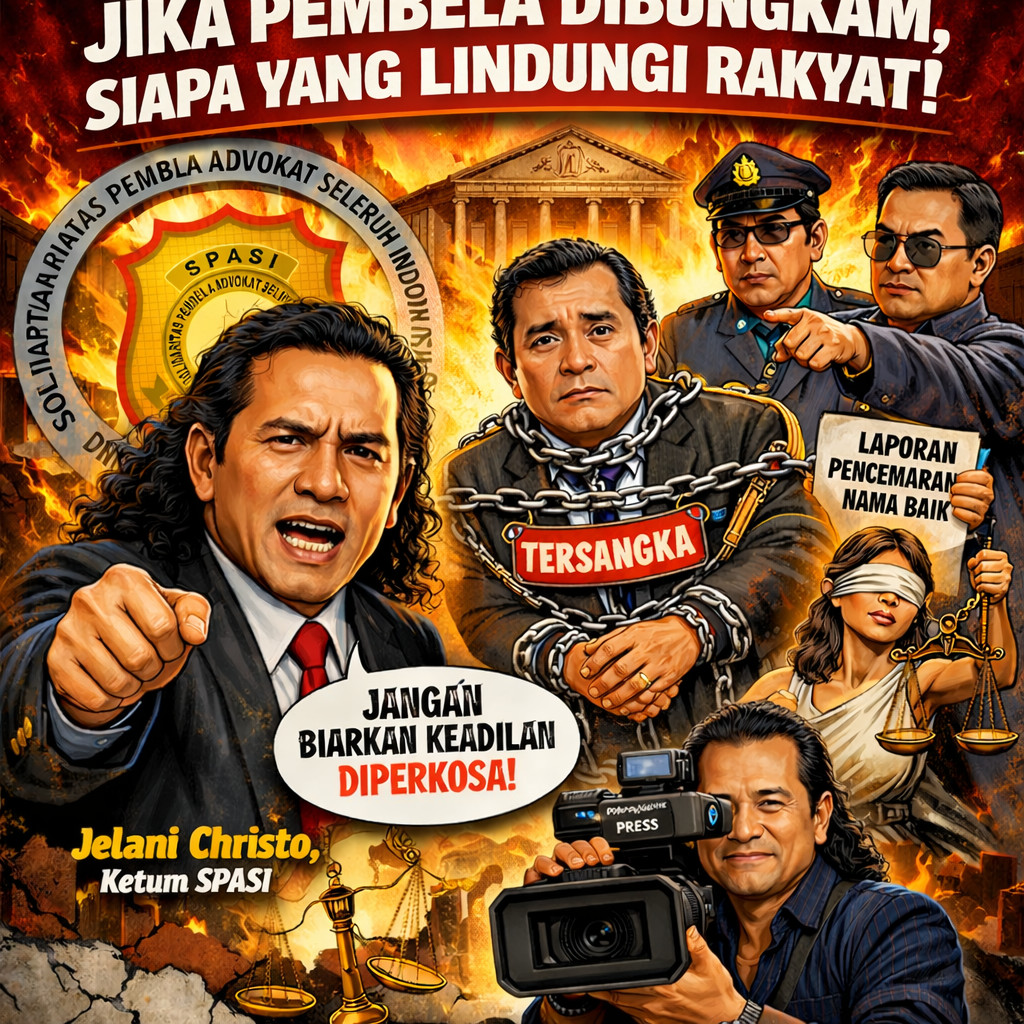 JAKARTA – Solidaritas Pembela Advokat Seluruh Indonesia (SPASI) melontarkan kritik keras terhadap praktik yang dinilai sebagai bentuk kriminalisasi advokat dalam menjalankan tugas profesinya. Ketua Umum SPASI, Jelani Christo SH MH, menyebut fenomena tersebut sebagai ancaman serius terhadap prinsip peradilan yang adil.