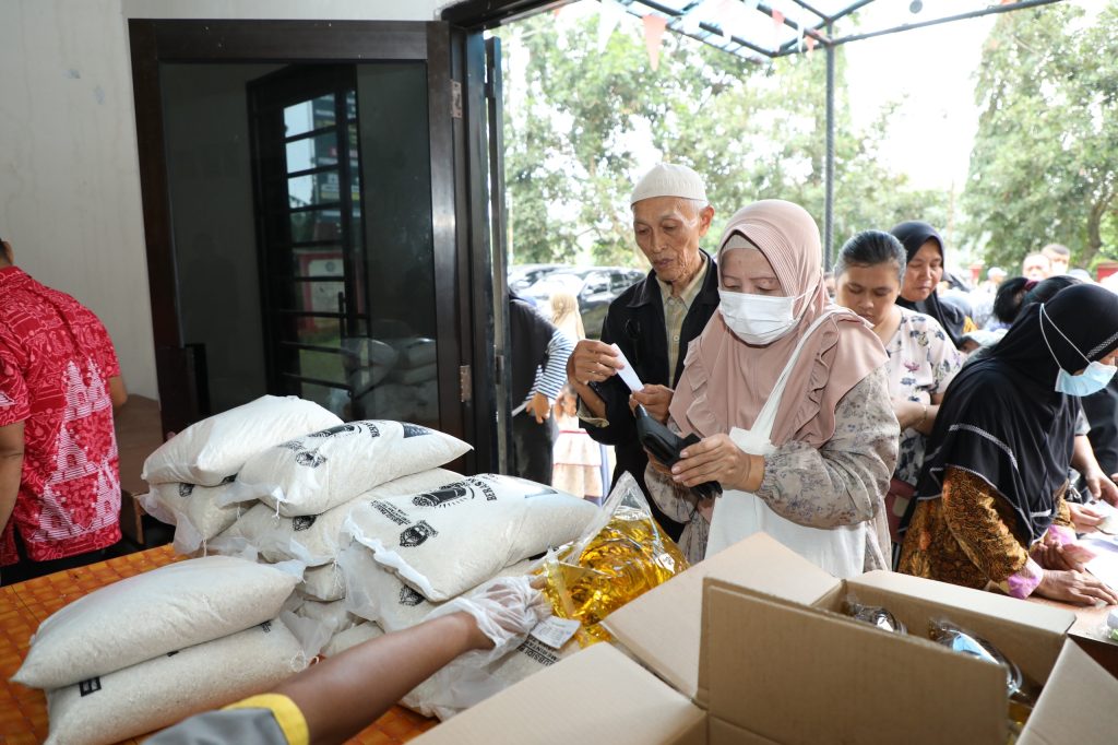 Namun, pada agenda kali itu pembelian dibatasi, tiap satu orang ber-KTP berhak membeli maksimal dua kantong beras ukuran lima kilogram dan dua liter minyak goreng.