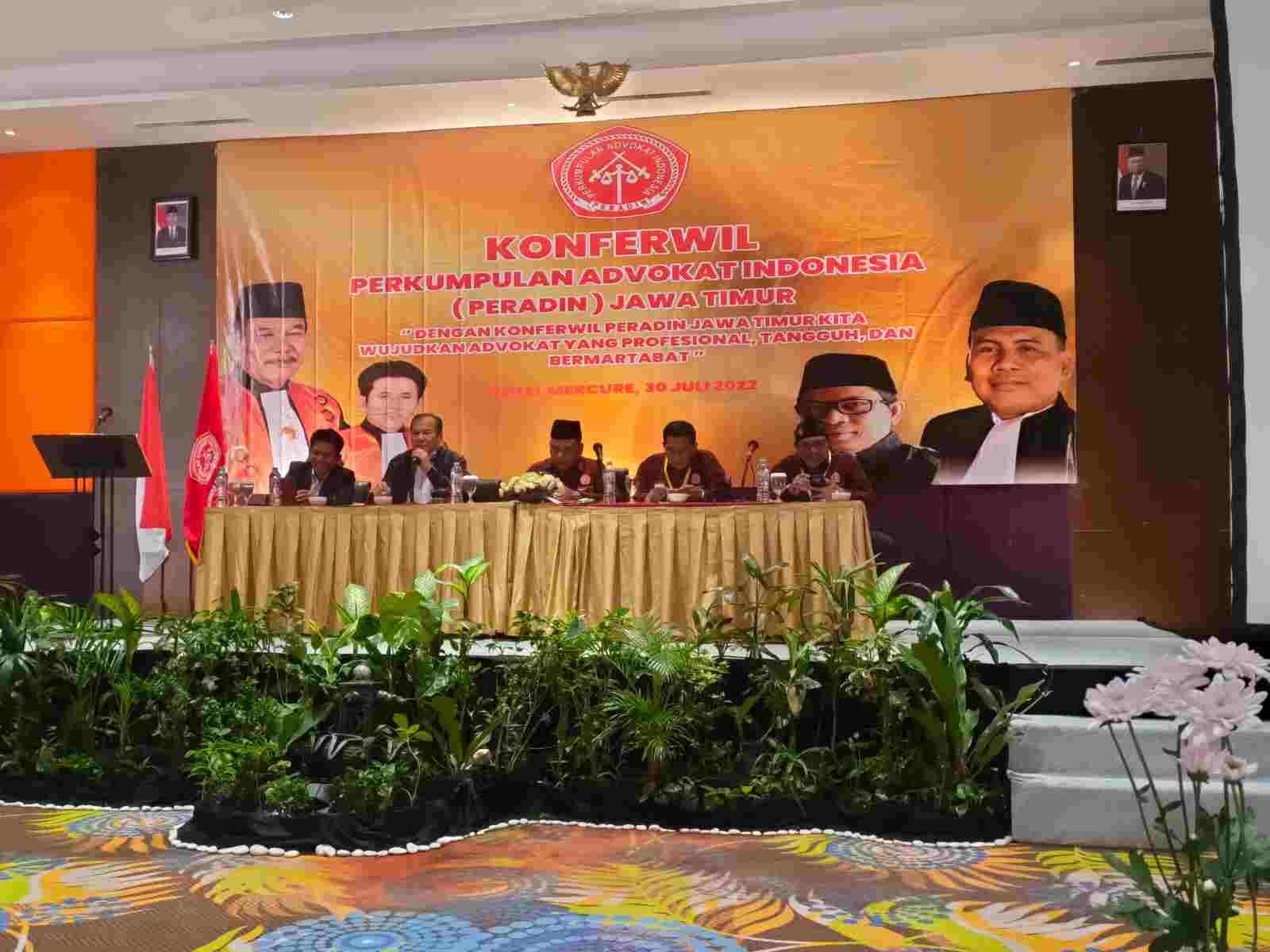 Konferwil ini bertemakan ‘Dengan Konferwil Peradin Jawa Timur Kita Wujudkan Advokat Profesional, Tangguh dan Bermartabat’. Dimana sidang musyawarah dipimpin oleh