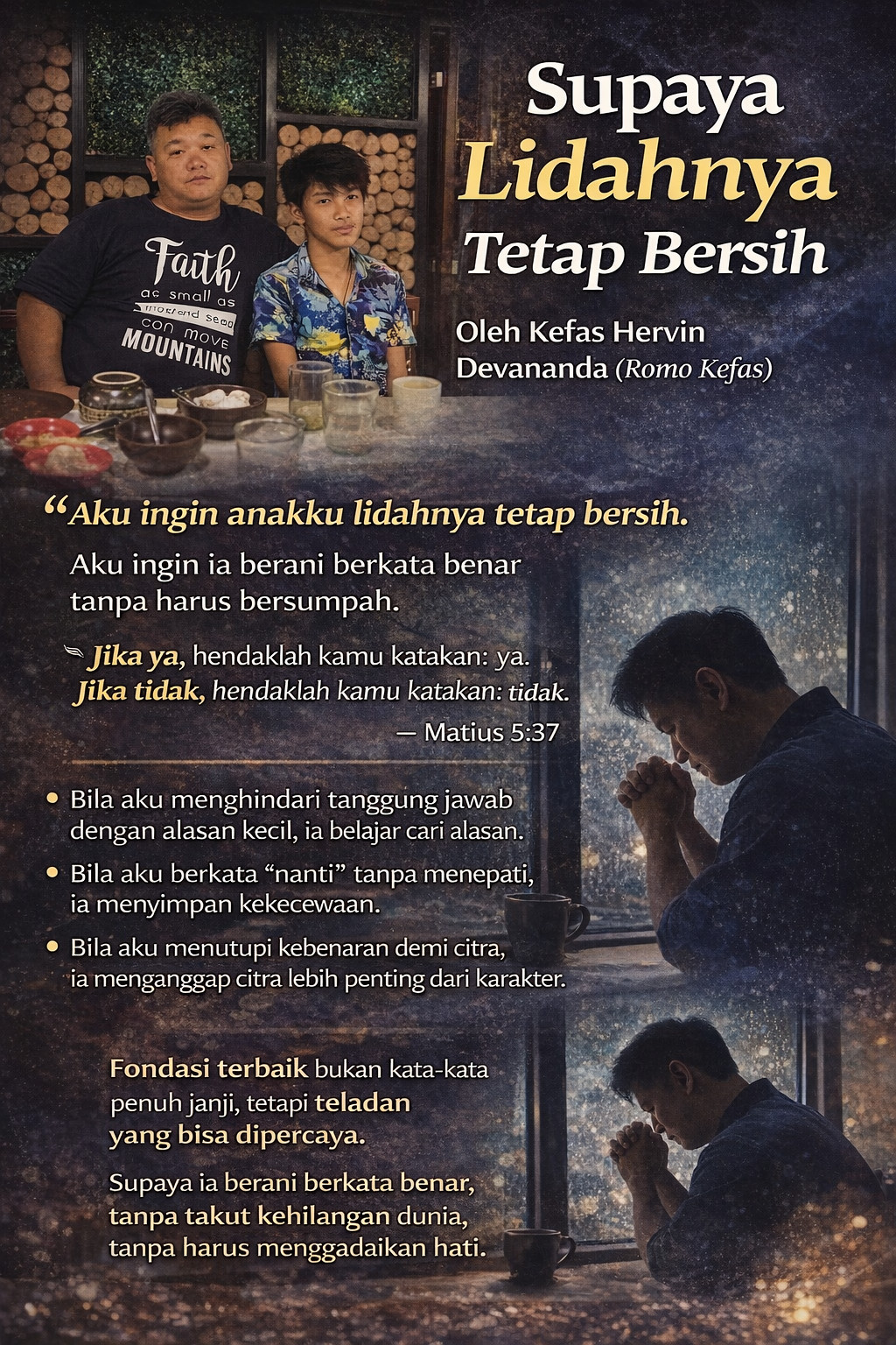 Aku mungkin tidak bisa melindunginya dari semua tekanan dunia. Tetapi aku bisa memberinya satu fondasi: bahwa hidup tanpa kebohongan memang lebih berat, tetapi jauh lebih tenang.