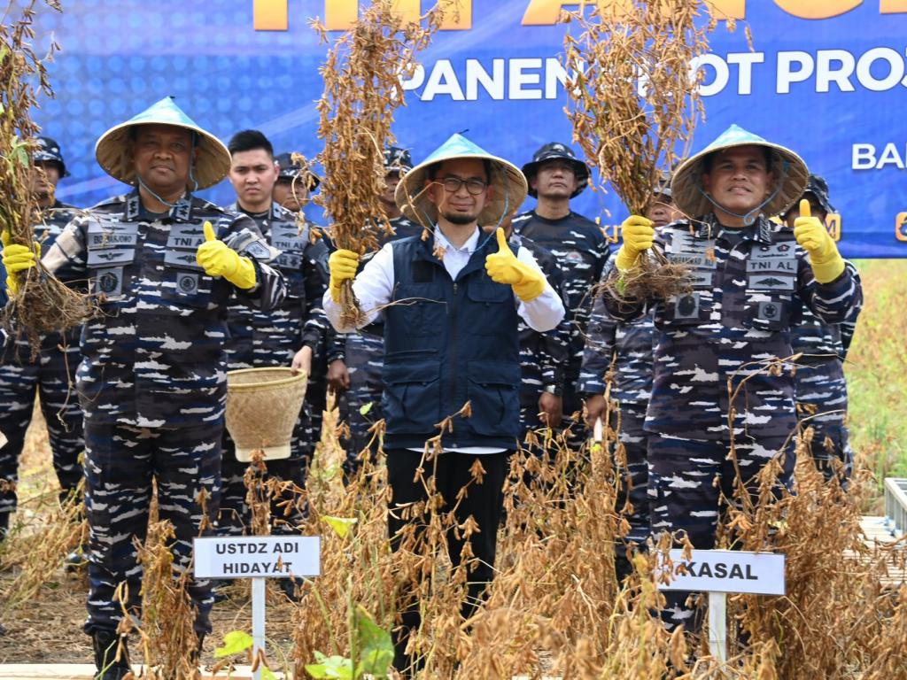 Selain itu, TNI AL juga telah menyiapkan strategi optimalisasi lahan untuk meningkatkan produksi kedelai serta menerapkan sistem pasca panen yang efisien untuk menjaga kualitas hasil panen dengan harapan nantinya hasil panen dapat disalurkan ke pasar domestik guna memenuhi kebutuhan pangan nasional.
