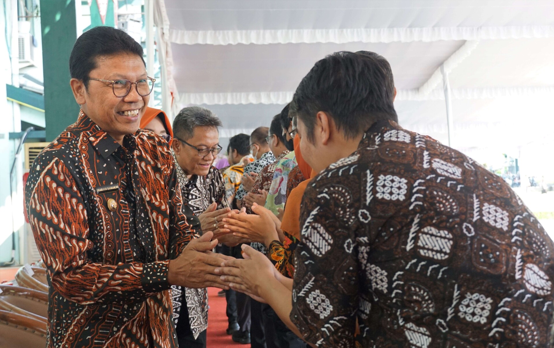 UMBULHARJO-PELITAKOTA.ID Pemerintah Kota Yogyakarta menggelar syawalan Idulfitri 1445 Hijriyah yang diikuti ribuan pegawai di Balai Kota Yogyakarta pada Selasa (16/4/2024). Syawalan tak hanya menjadi ruang bertemu seluruh pegawai Pemkot Yogyakarta untuk saling bermaafan. Tapi juga diharapkan menjadi penyemangat bagi para pegawai untuk meningkatkan pelayanan kepada masyarakat dan kinerja Pemkot Yogyakarta.