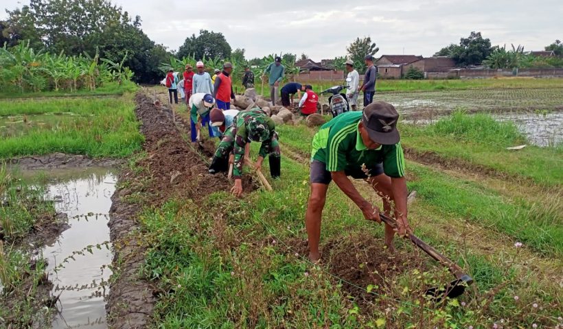 TNI dan Warga Kompak pasang Bowplank dan gali pondasi untuk Talud Pra TMMD Sengkuyung III Kodim 0726/Sukoharjo